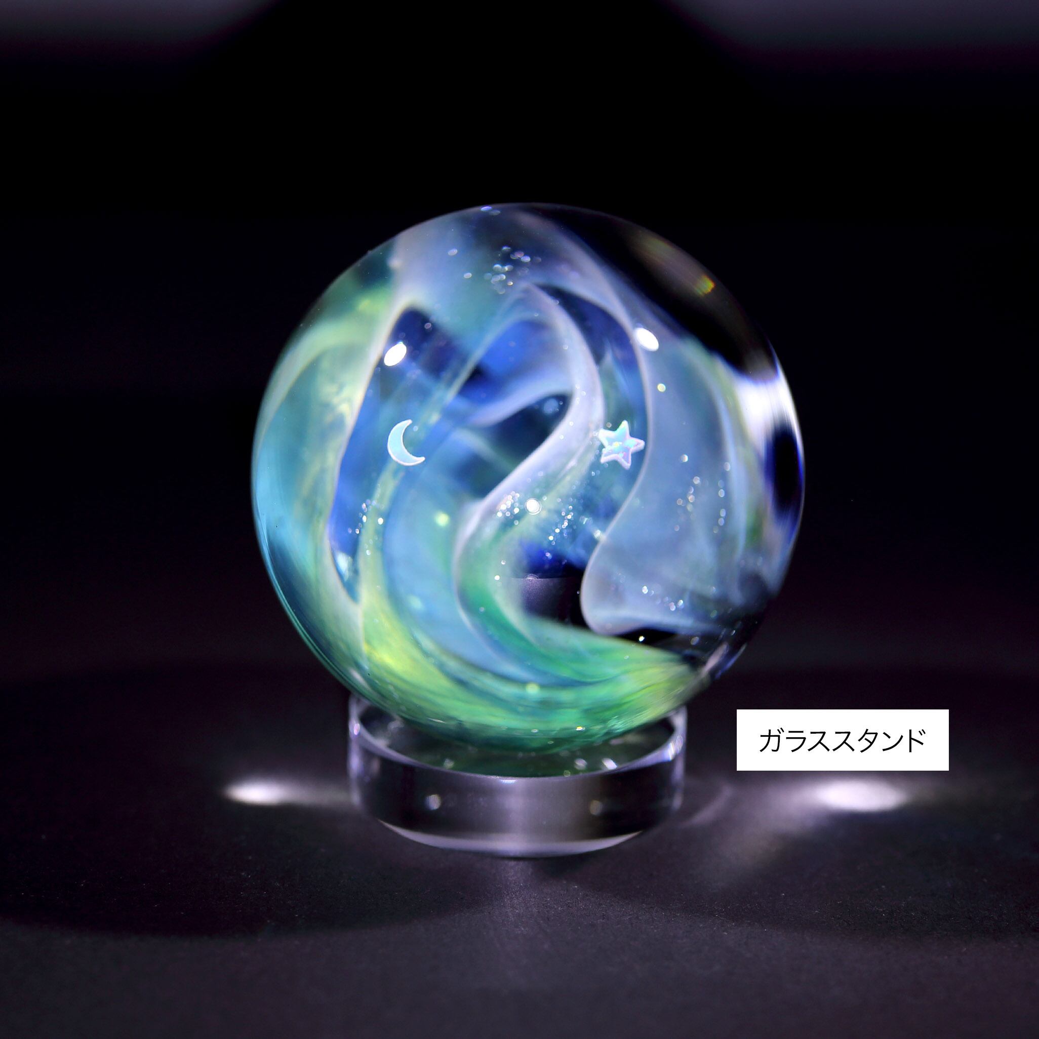 揺らめくオーロラを背景に、煌く星々、多様な色に変化する高品質なオパール美しさを包み込みました。壮大な夜空の星とオーロラの輝きをガラスの中に。