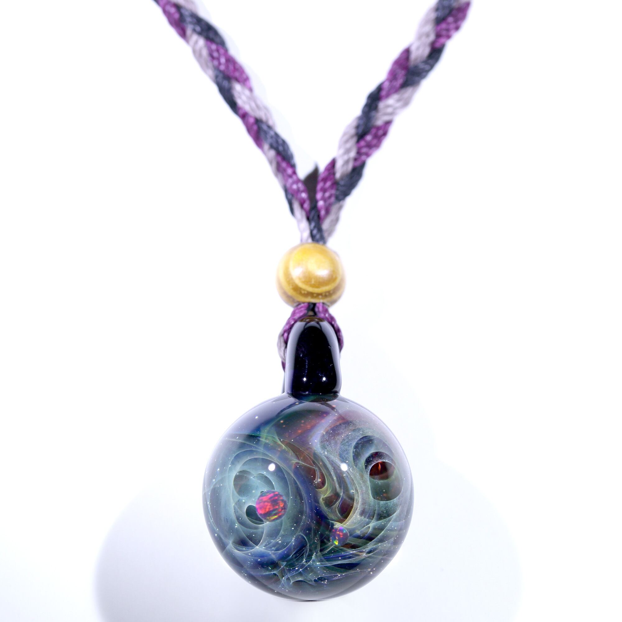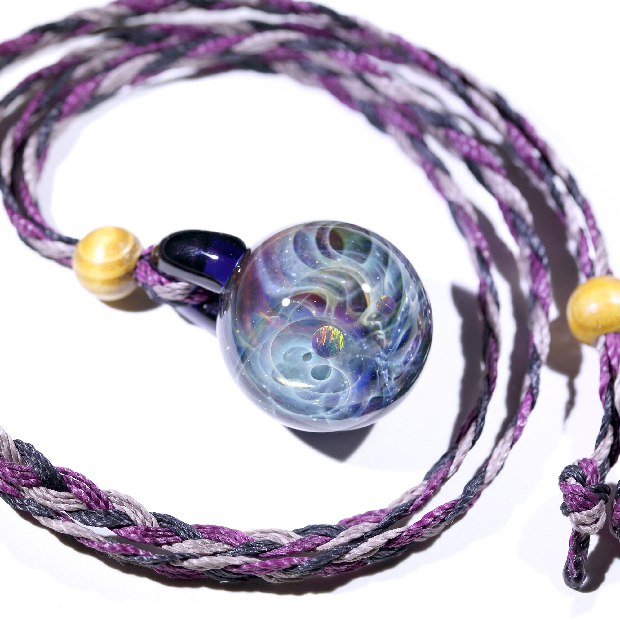 星雲状銀河にオパールを閉じ込めた宇宙ガラスネックレス。