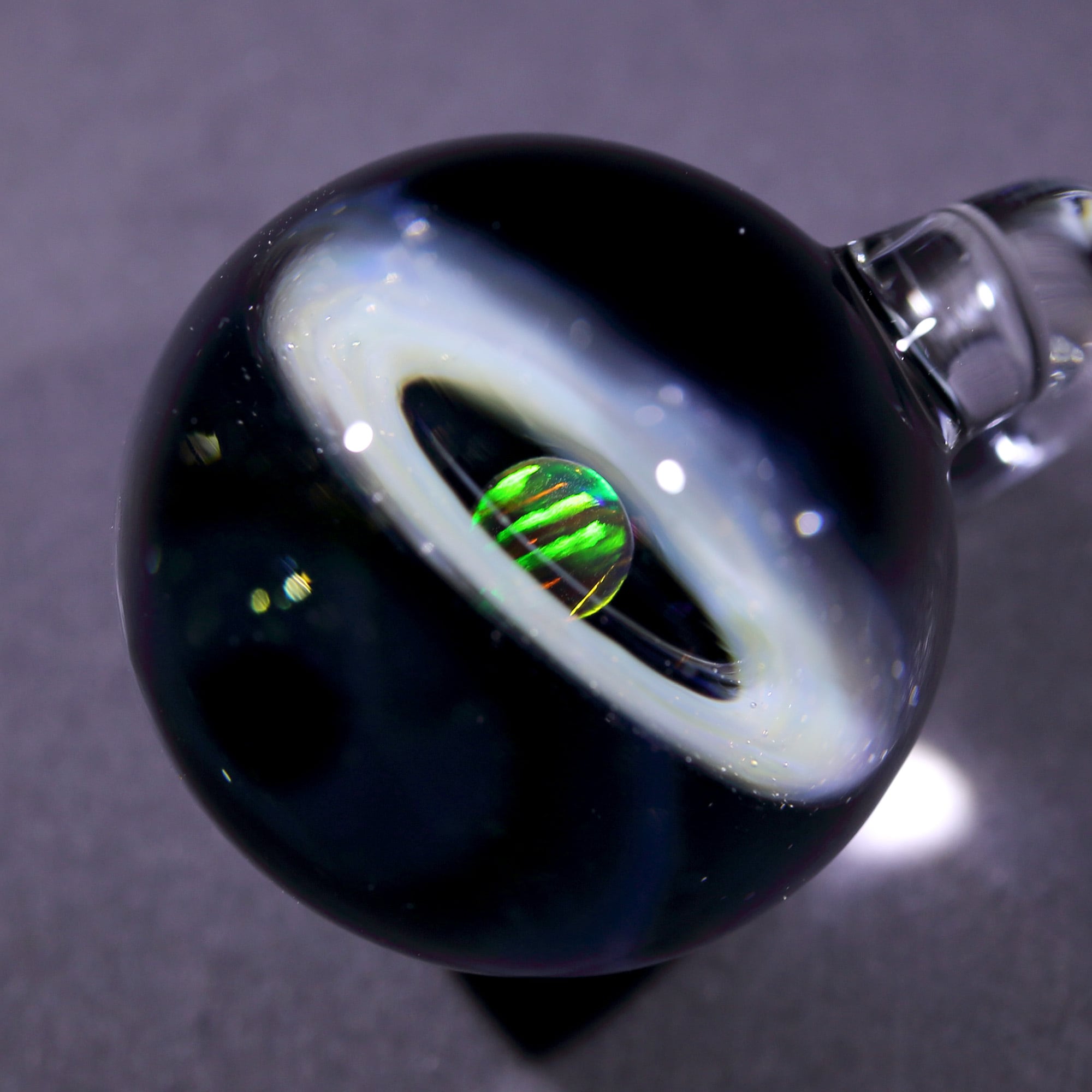 ケースを開けると宇宙ガラスにLEDライトの光が射し込み輝きます。