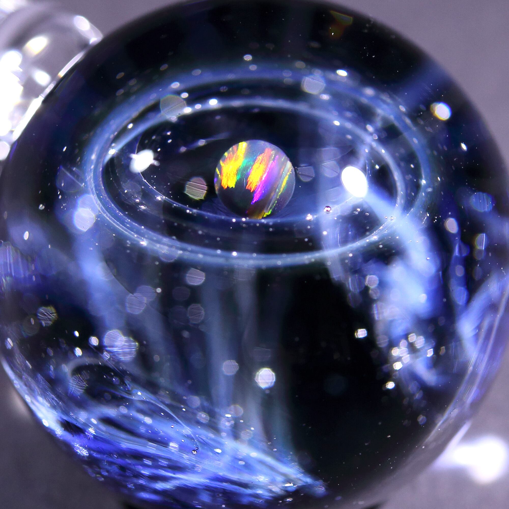 直径27㎜、オパールを閉じ込めた宇宙ガラスネックレス。