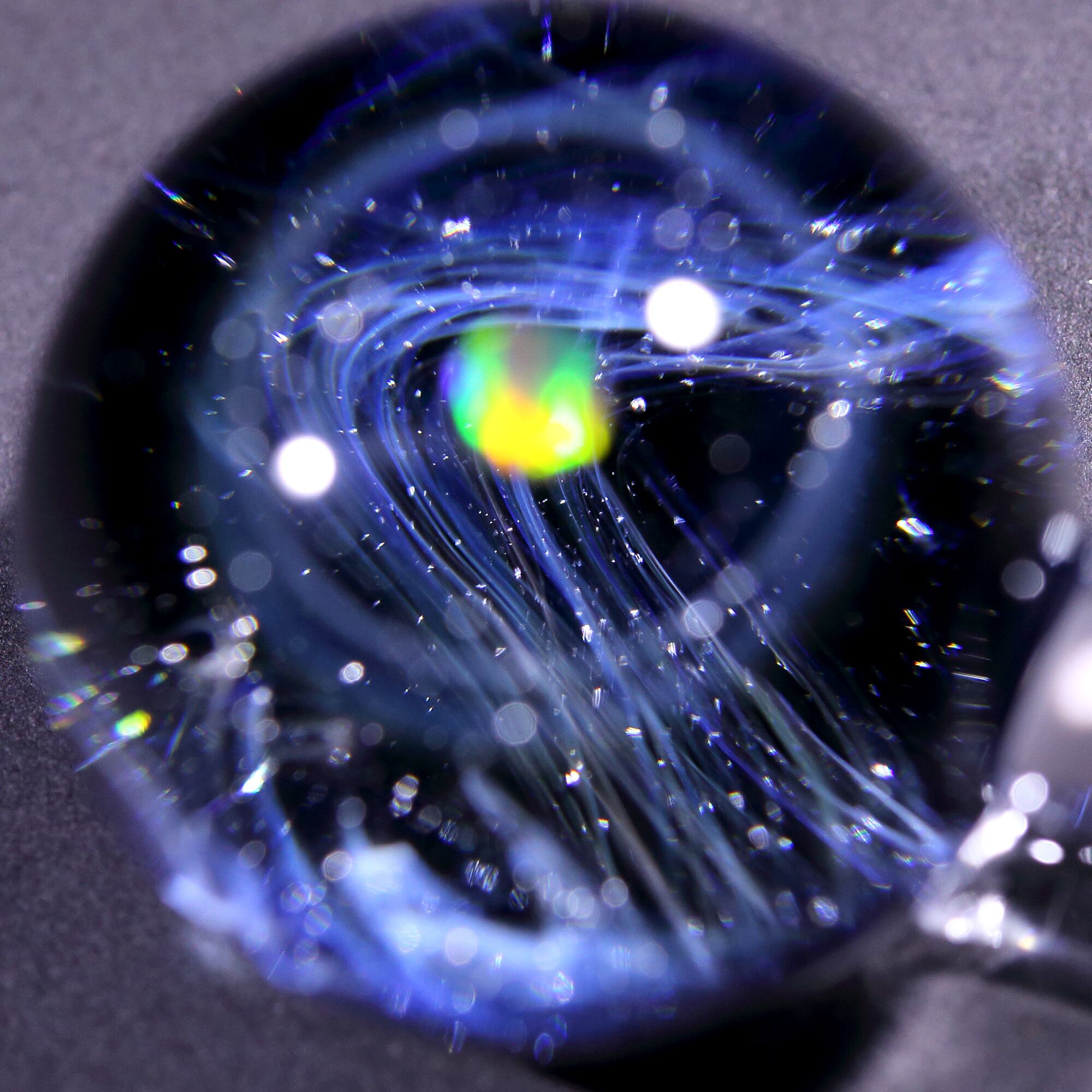 ケースを開けると宇宙ガラスにLEDライトの光が射し込み輝きます。