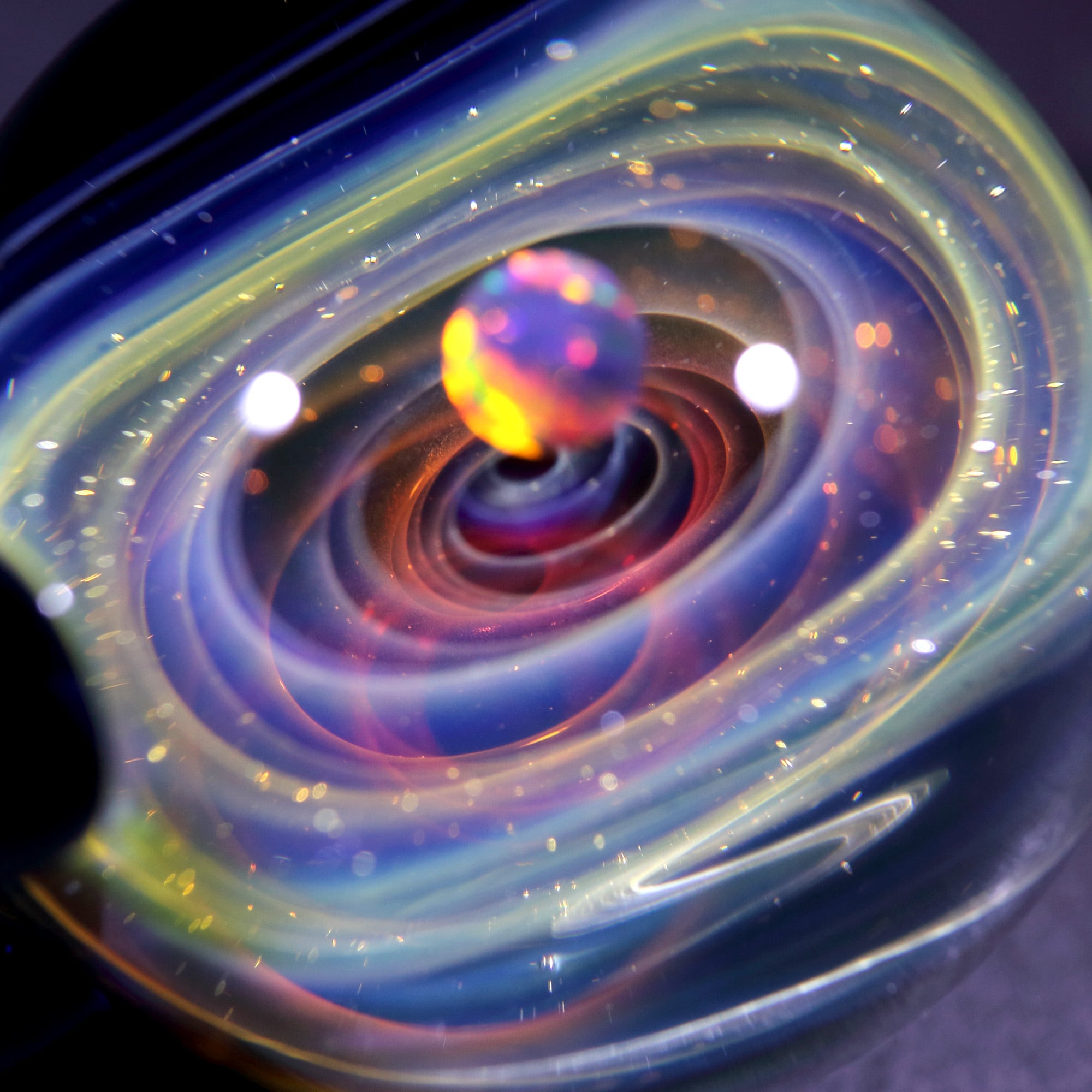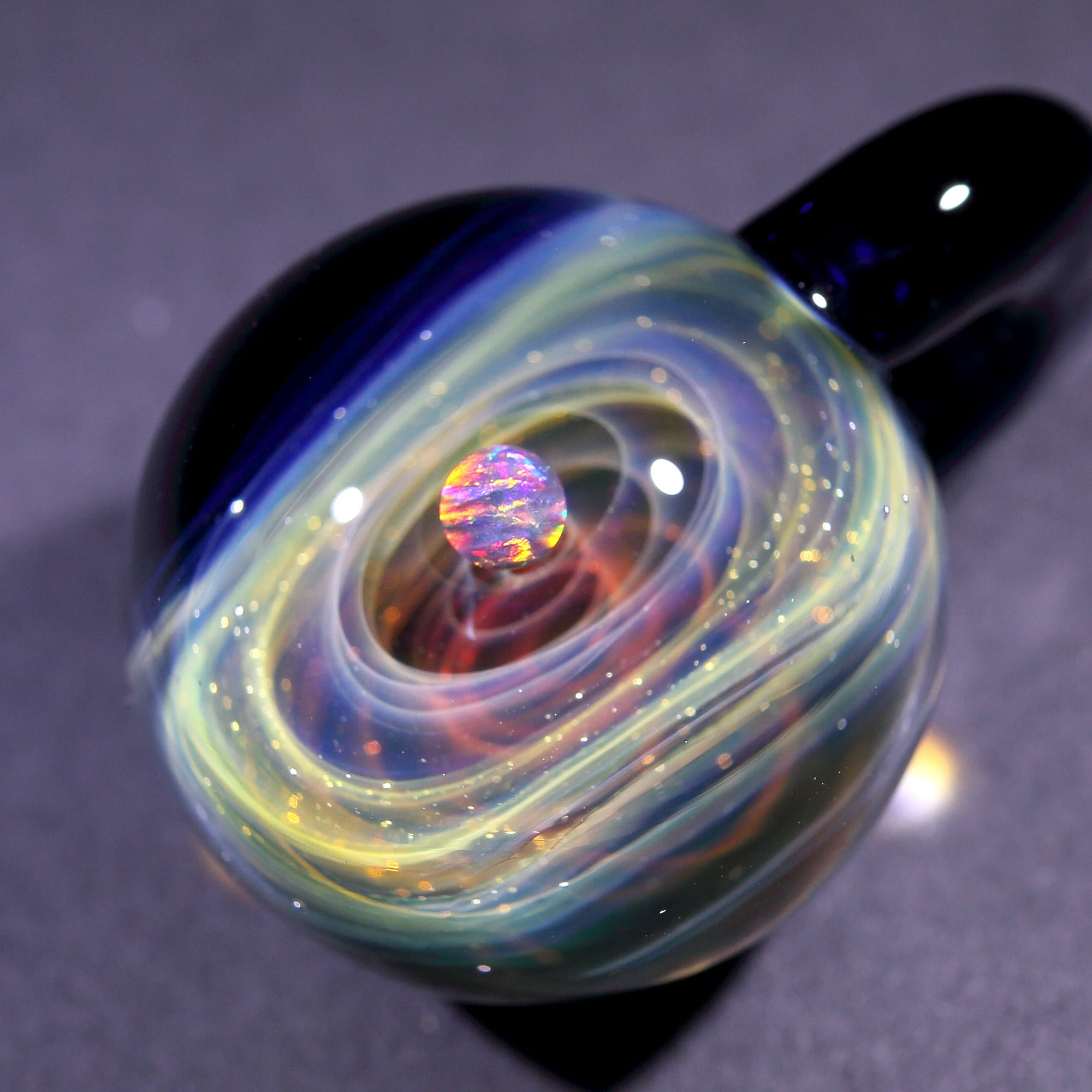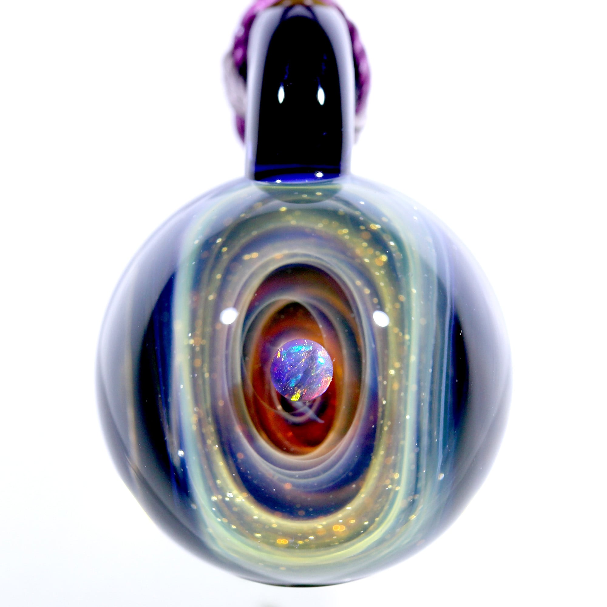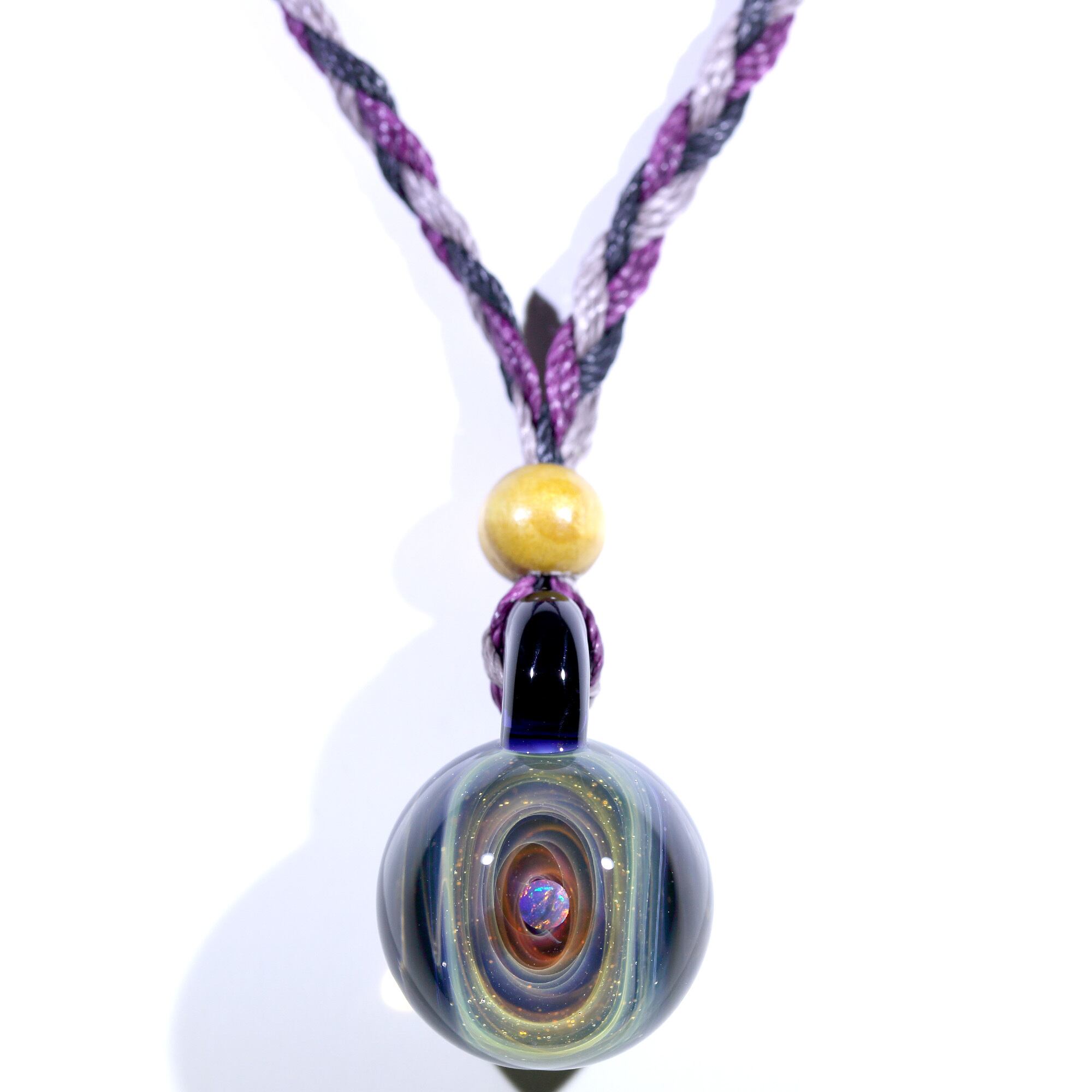 螺旋状銀河にオパールを閉じ込めた宇宙ガラスネックレス。