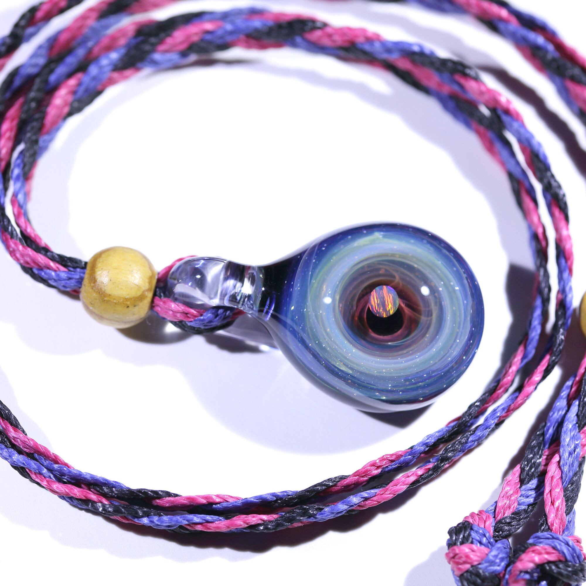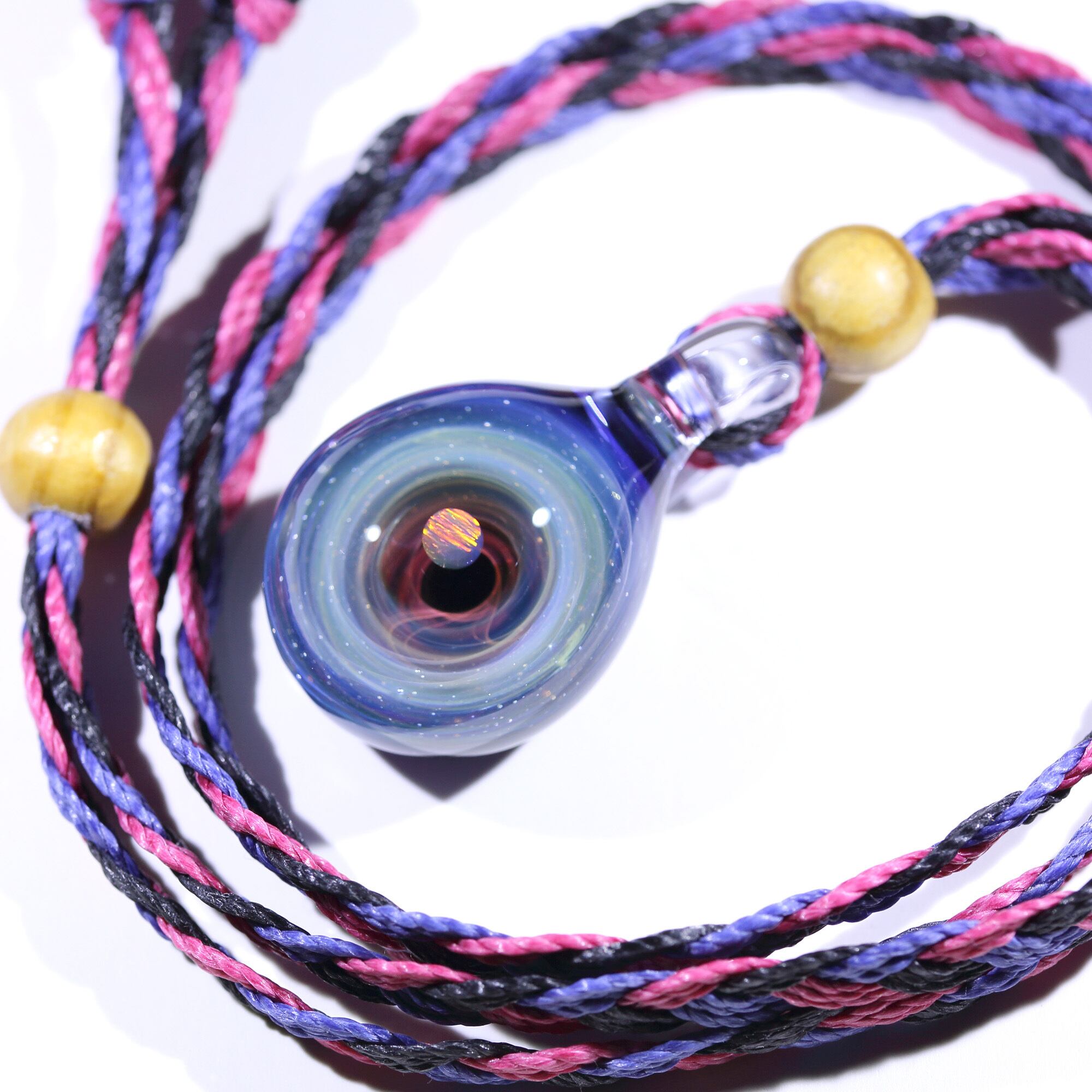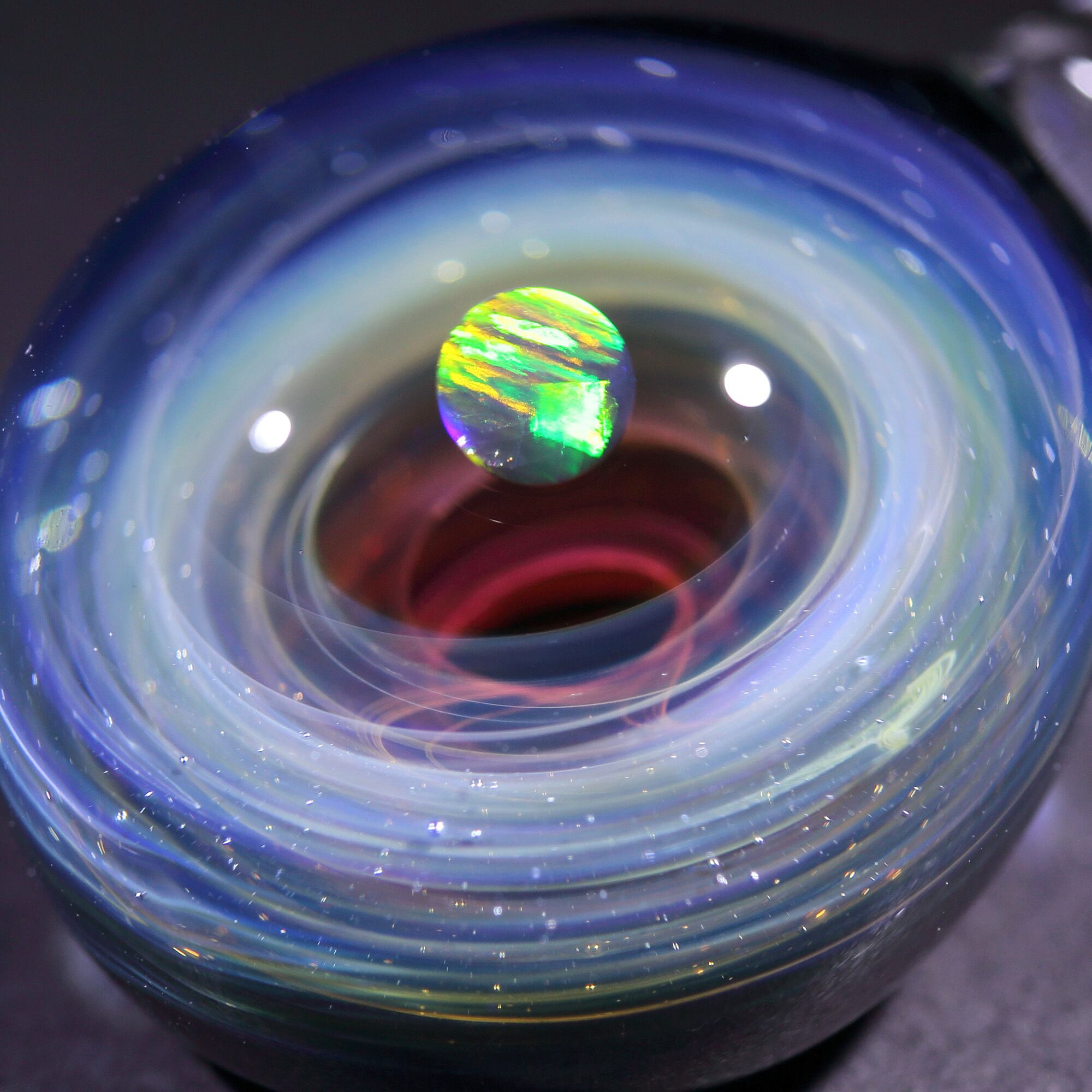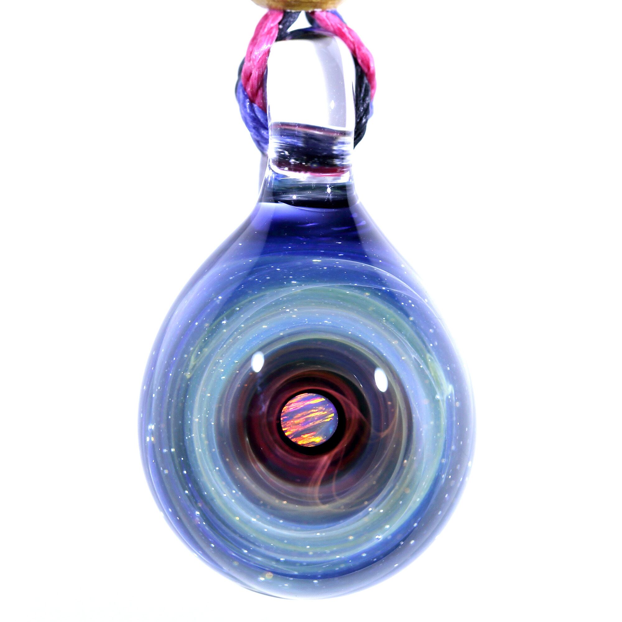 螺旋状銀河にオパールを閉じ込めた宇宙ガラスネックレス。