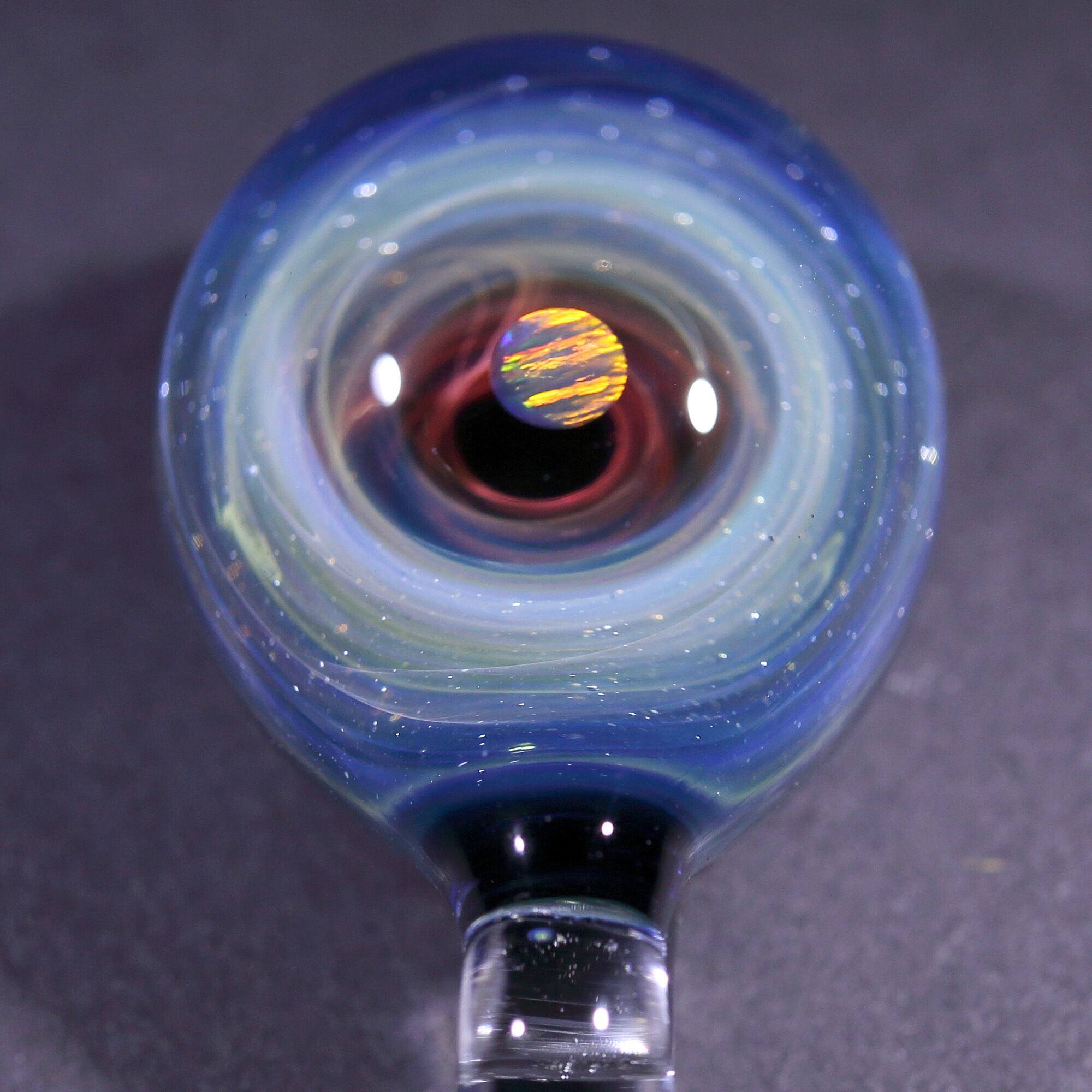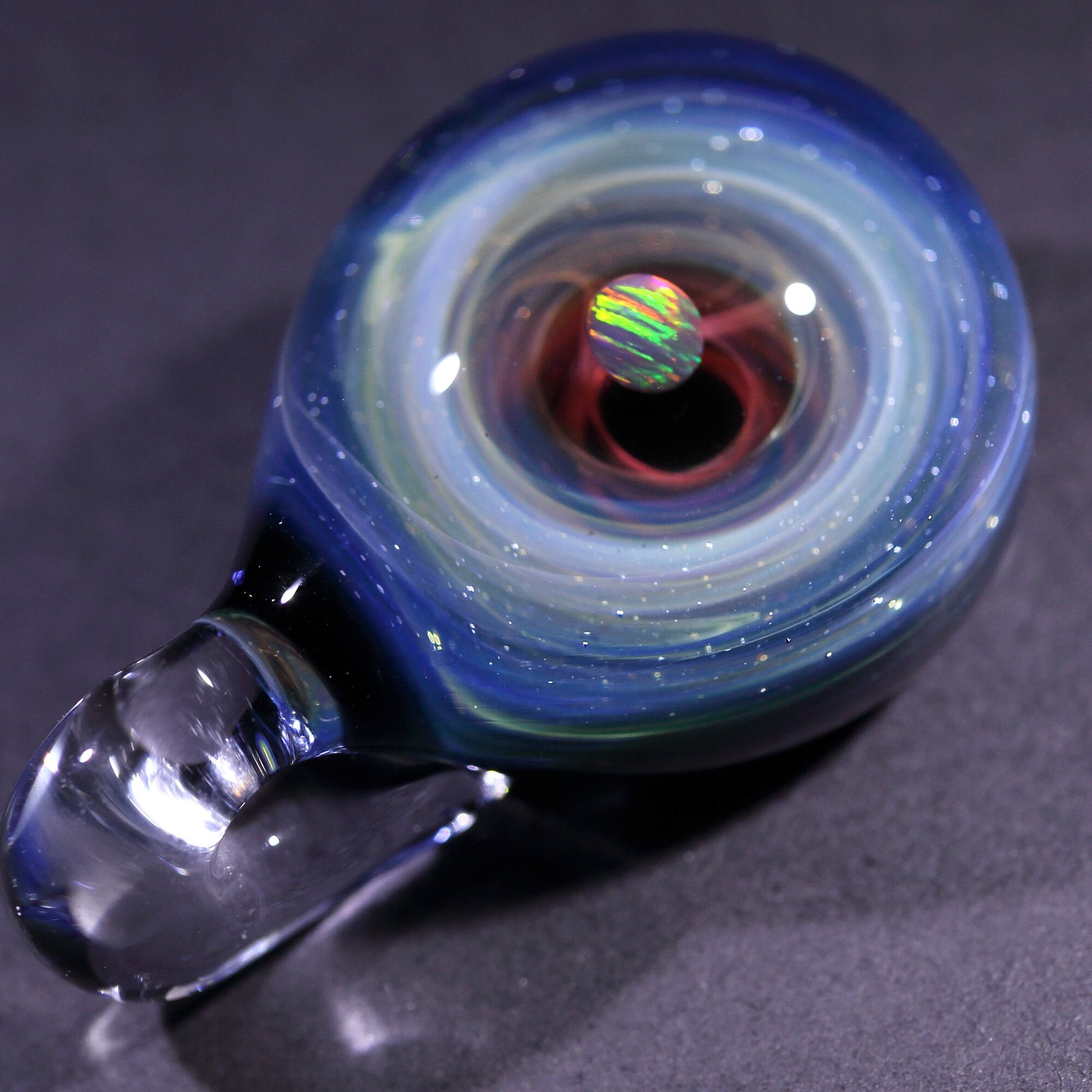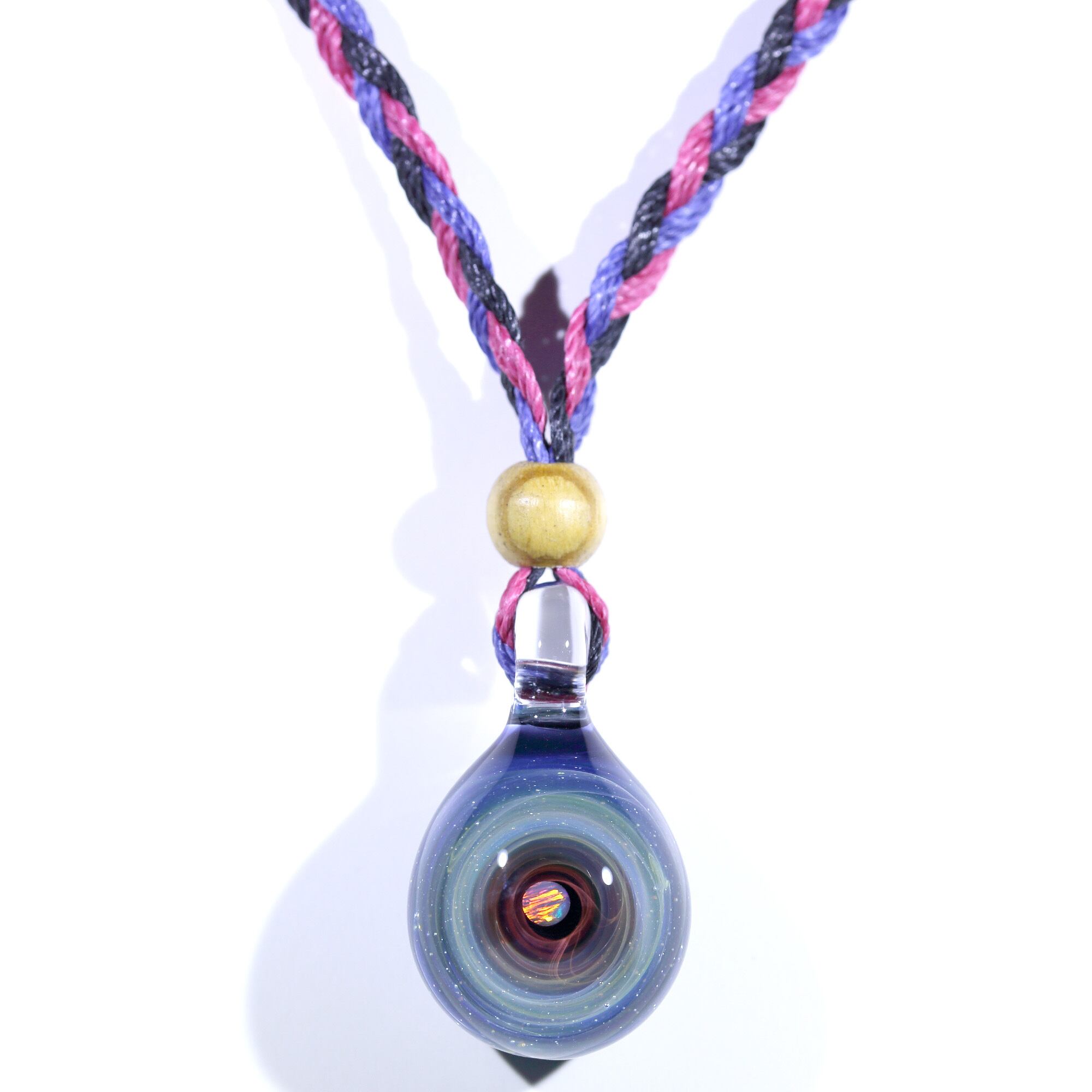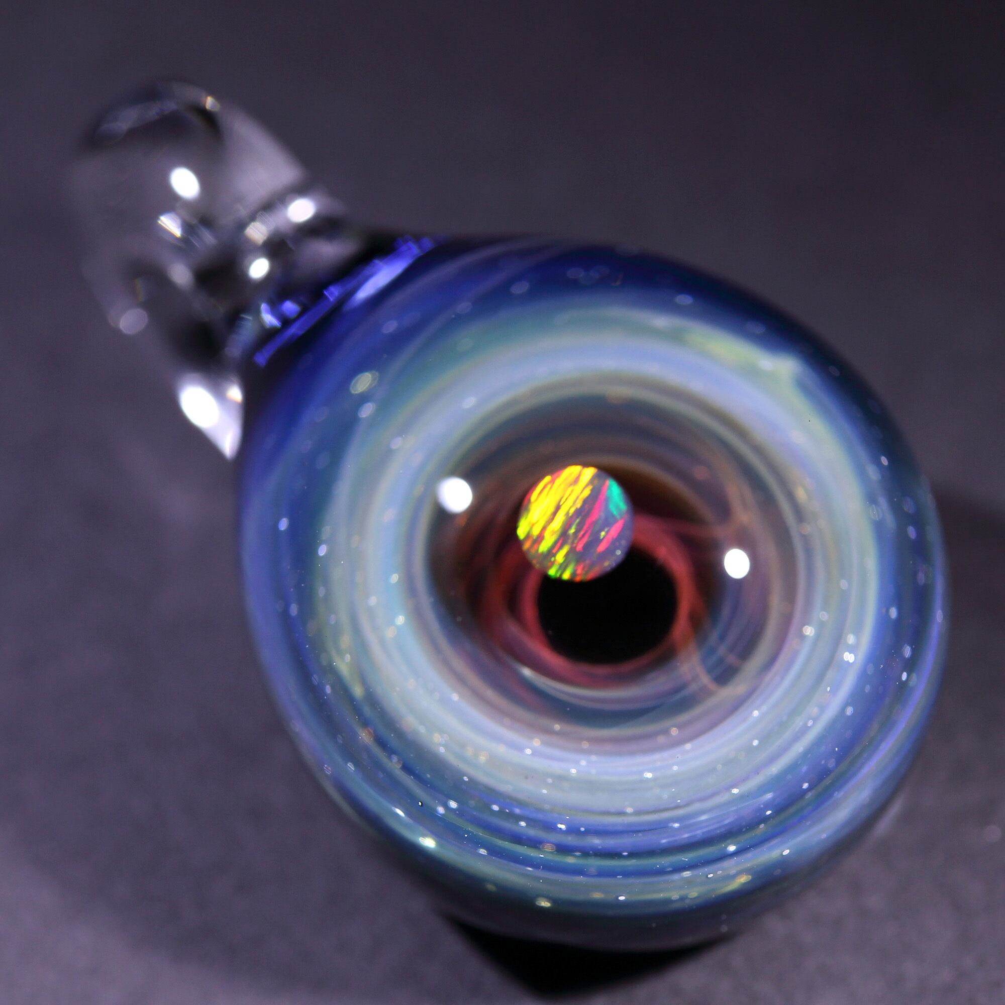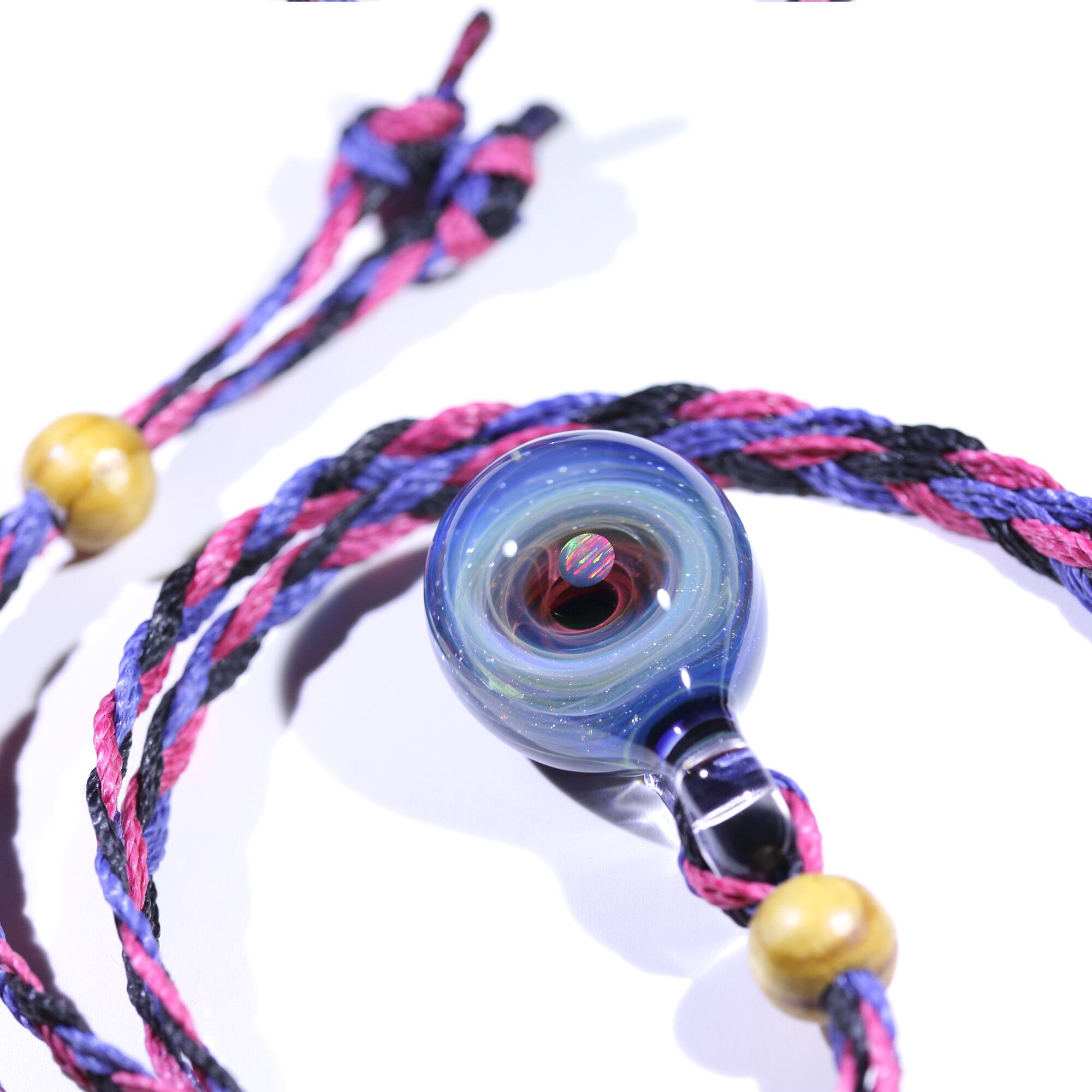 螺旋状銀河にオパールを閉じ込めた宇宙ガラスネックレス。