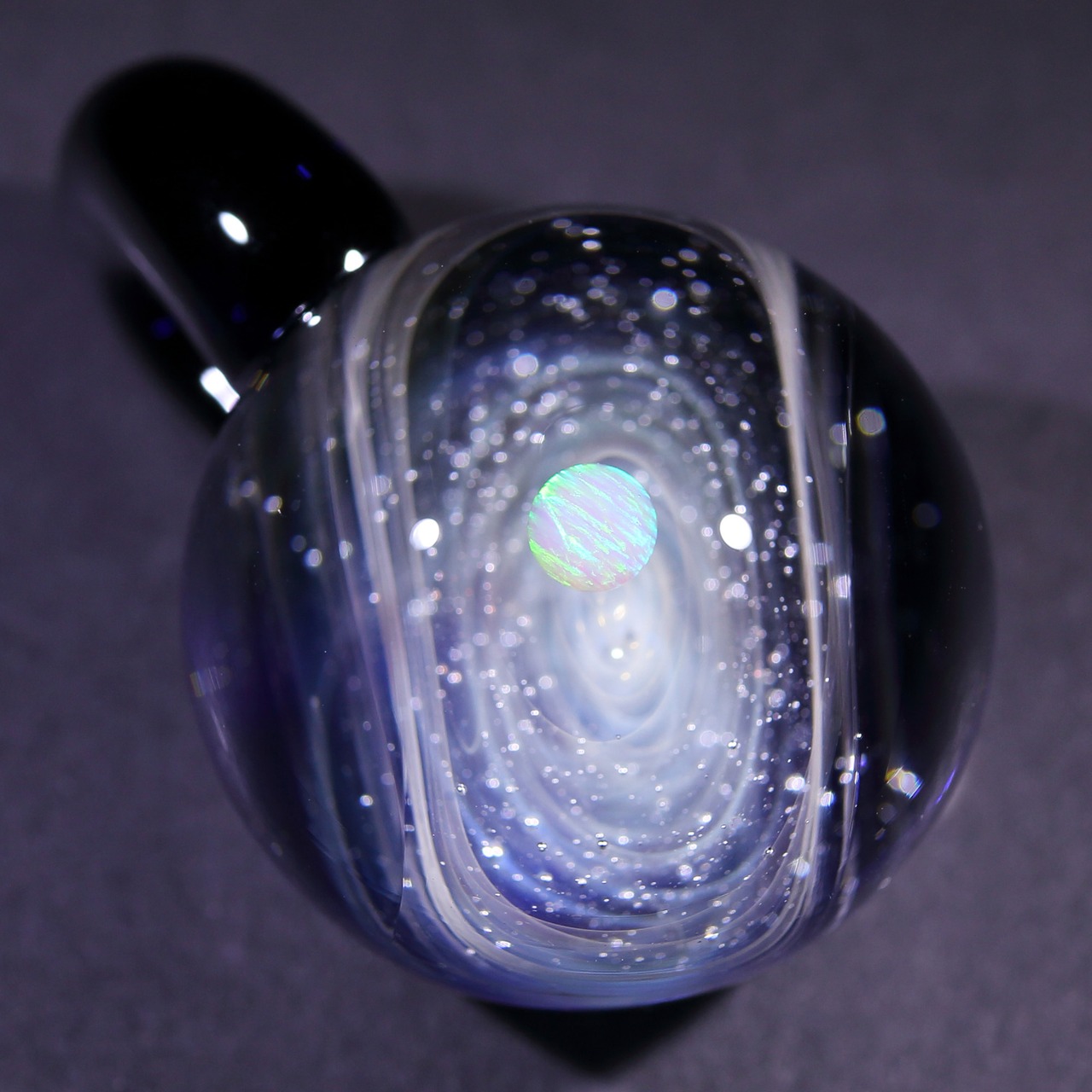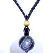 螺旋状銀河にオパールを閉じ込めた宇宙ガラスネックレス。