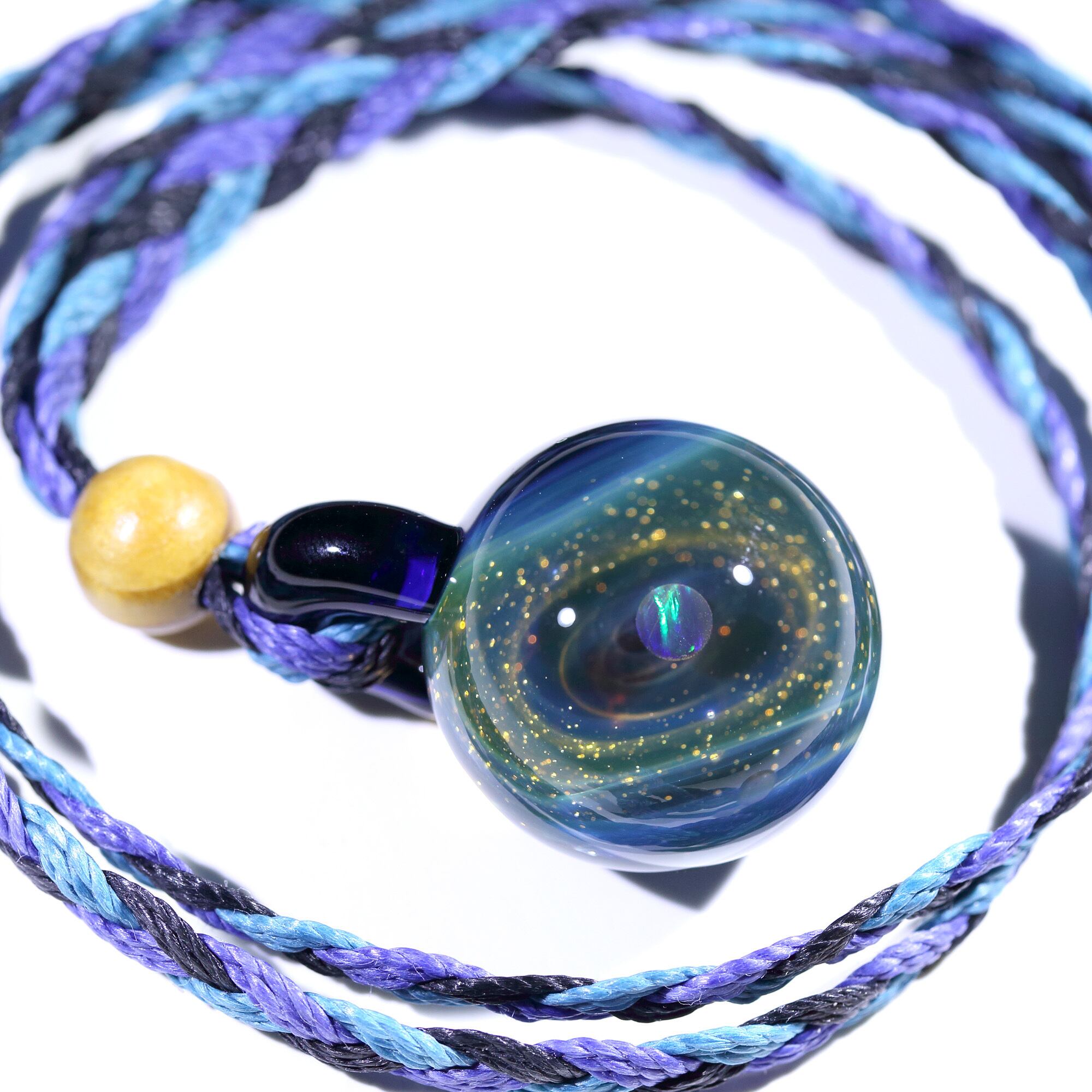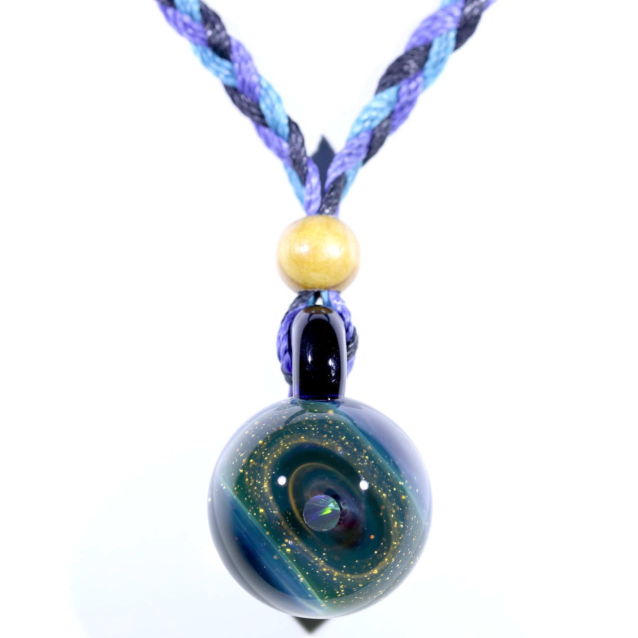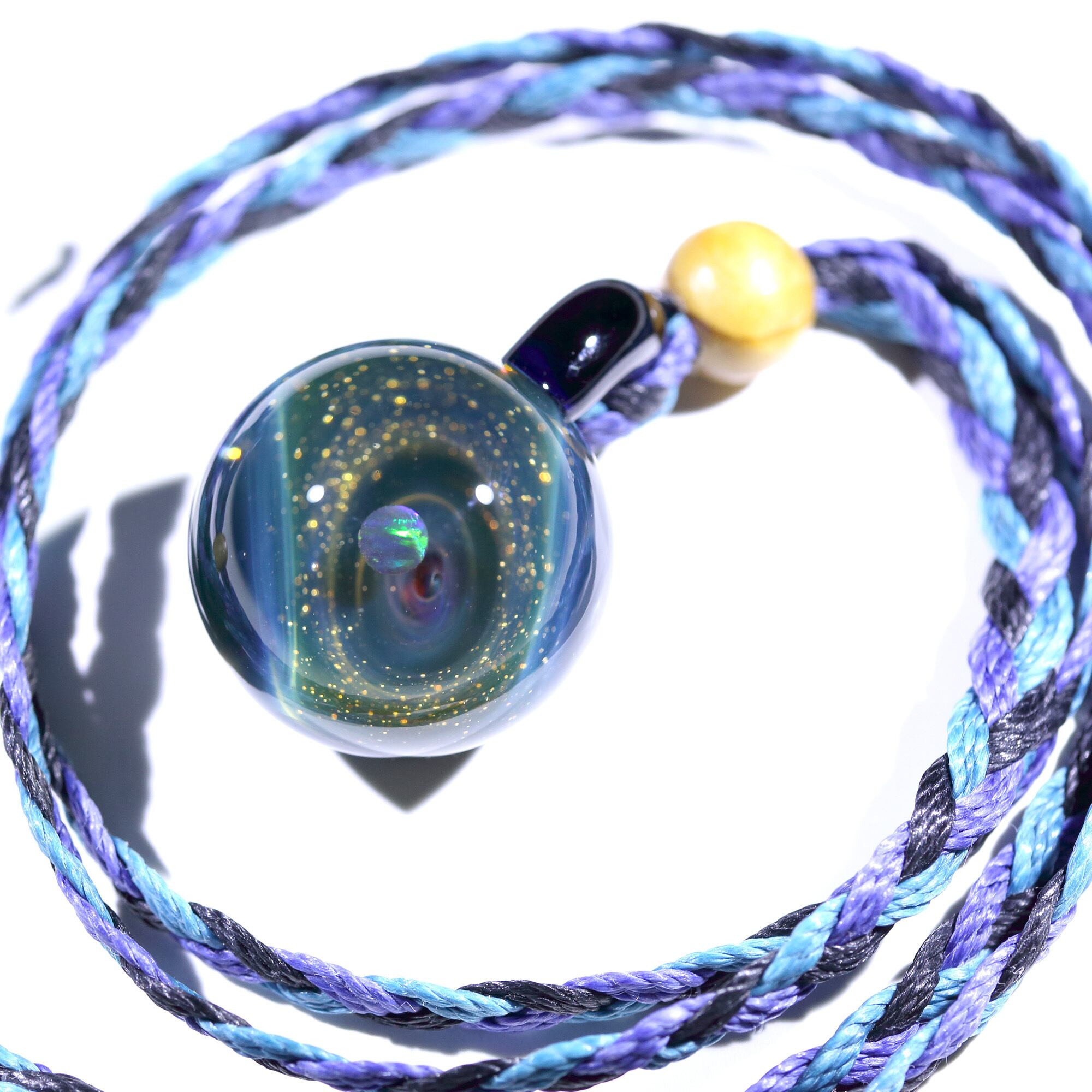 螺旋状銀河にオパールを閉じ込めた宇宙ガラスネックレス。