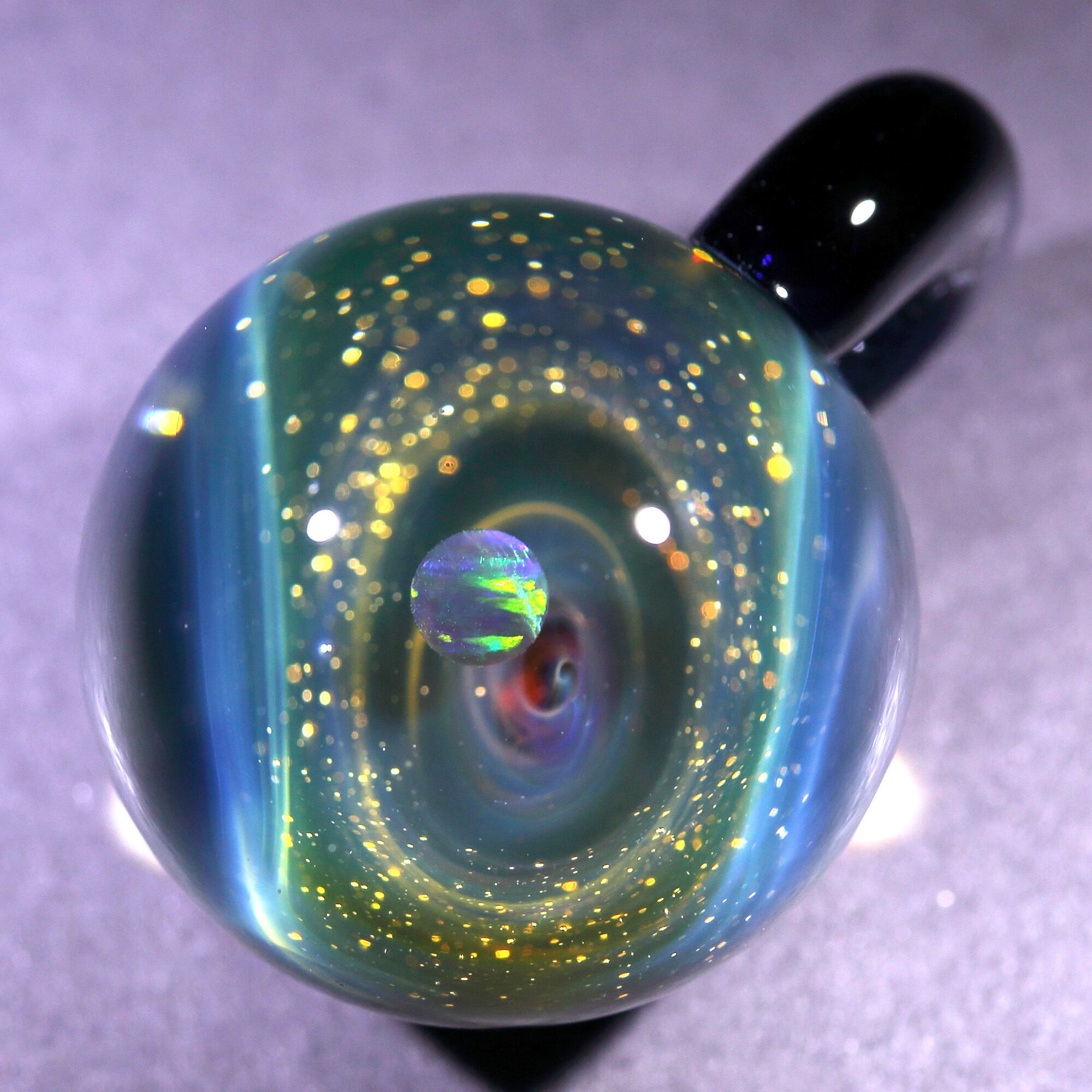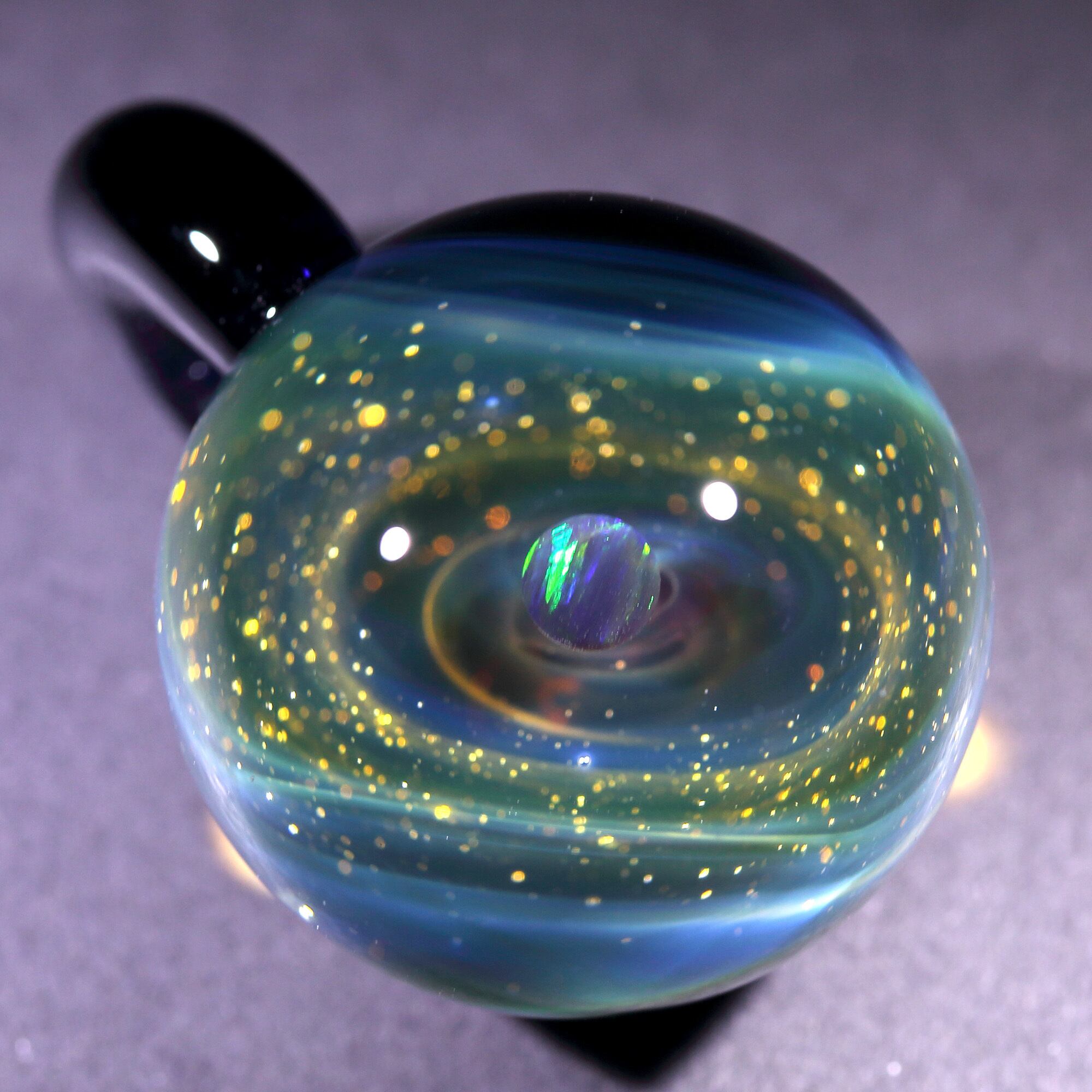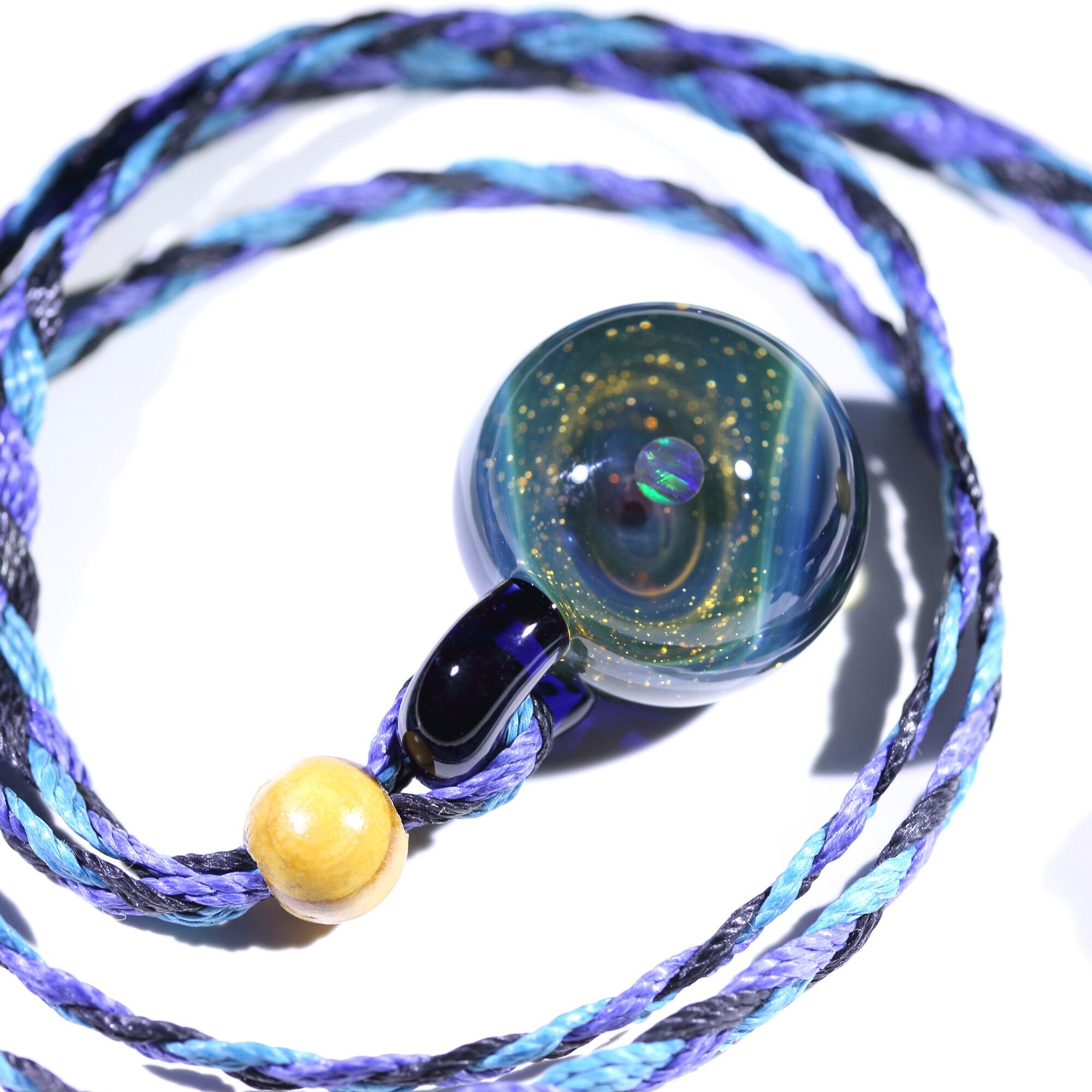 螺旋状銀河にオパールを閉じ込めた宇宙ガラスネックレス。