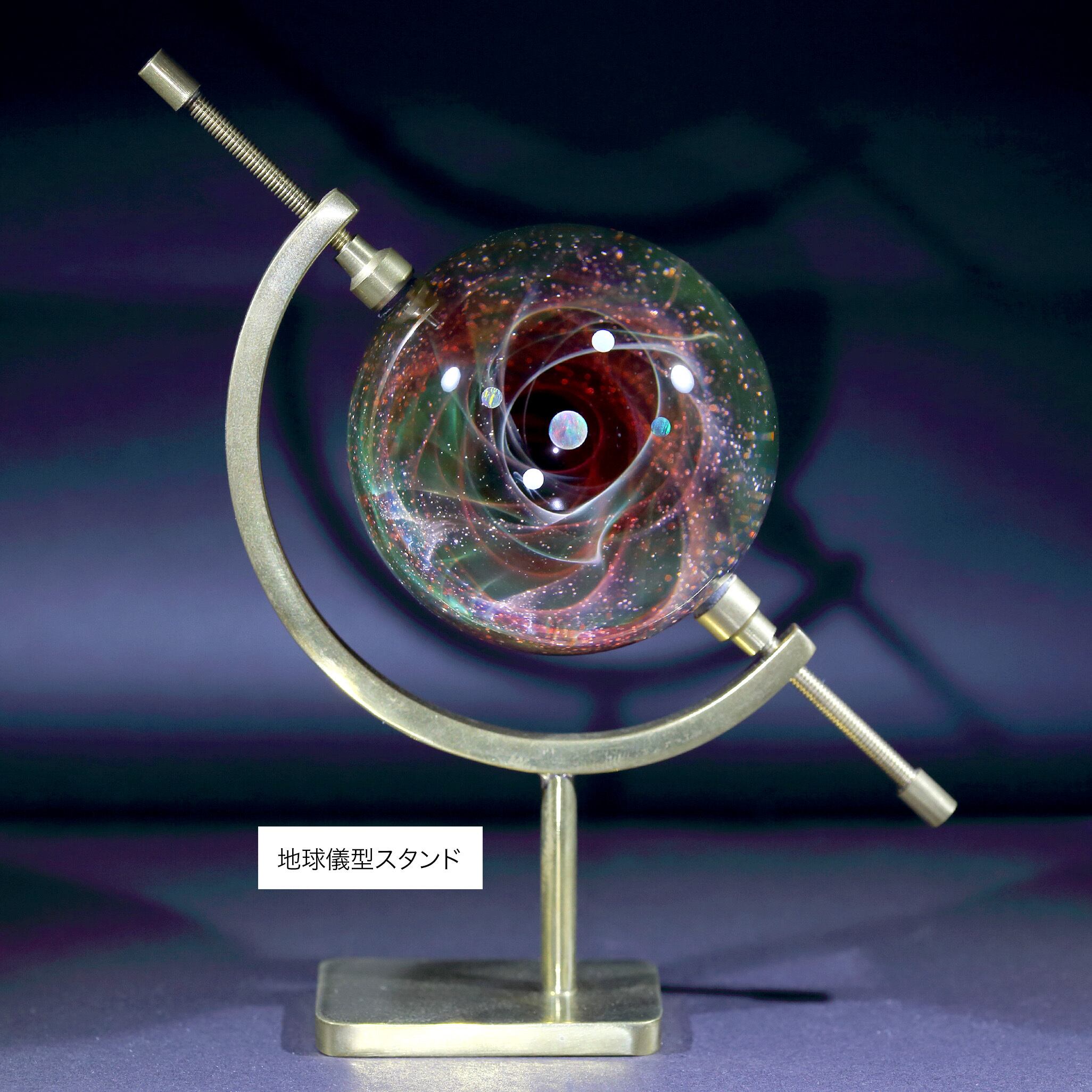 真鍮製地球儀型スタンド(高さ:約120mm、幅:約85mm)は¥4000の追加でお付けできます。
