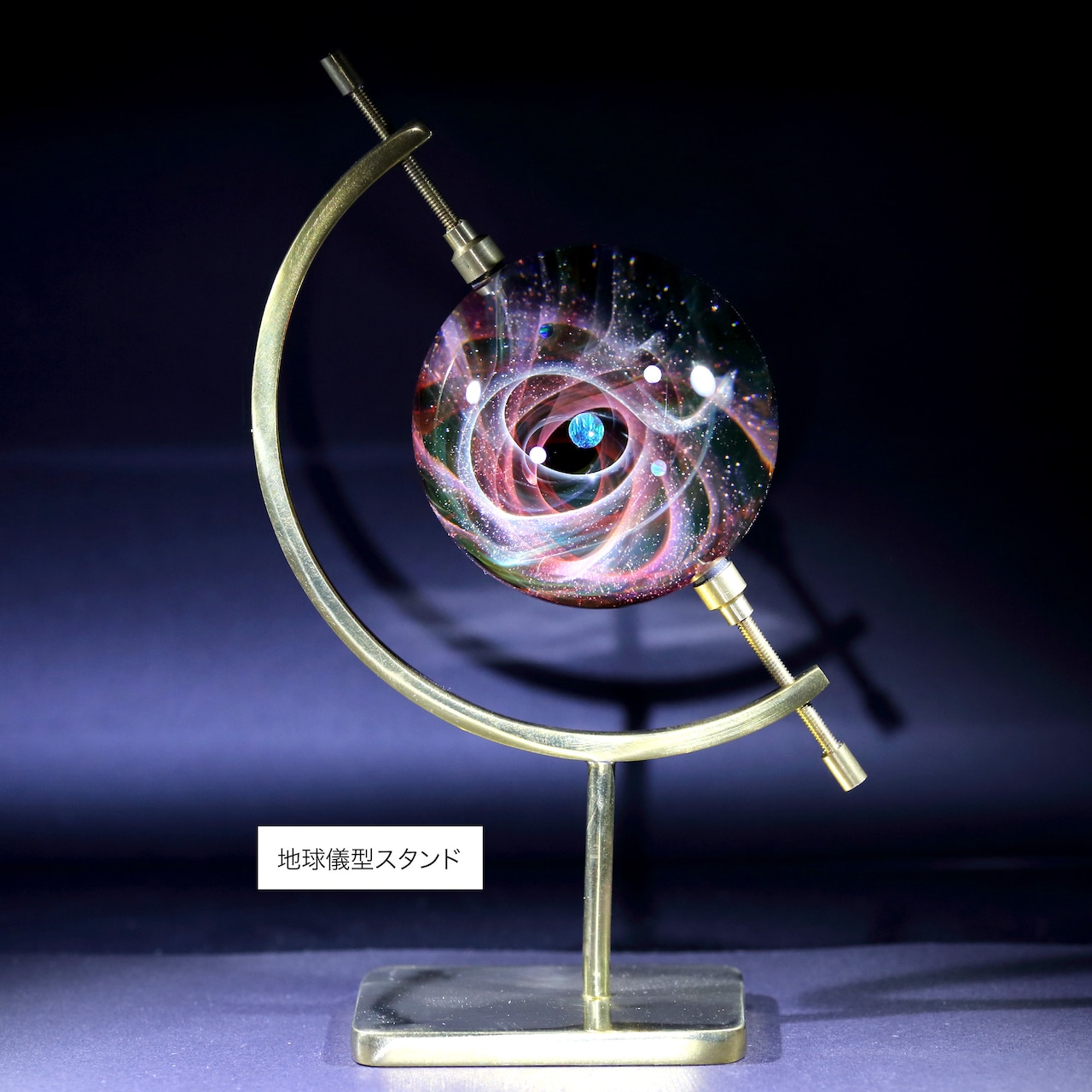 真鍮製地球儀型スタンド(高さ:約120mm、幅:約85mm)は¥4000の追加でお付けできます。