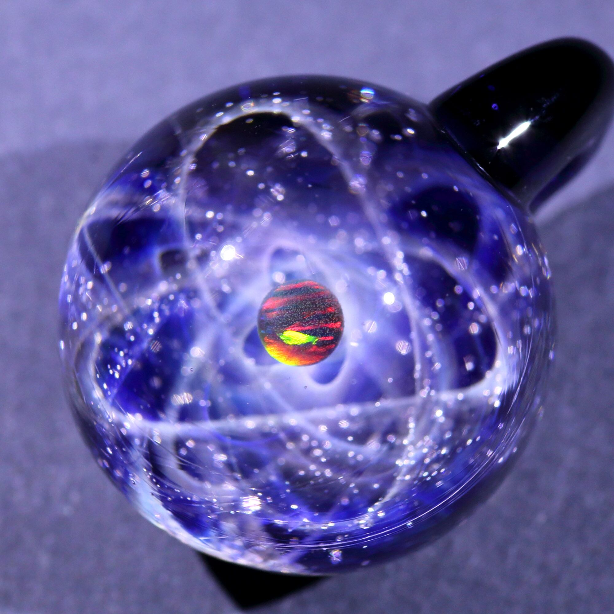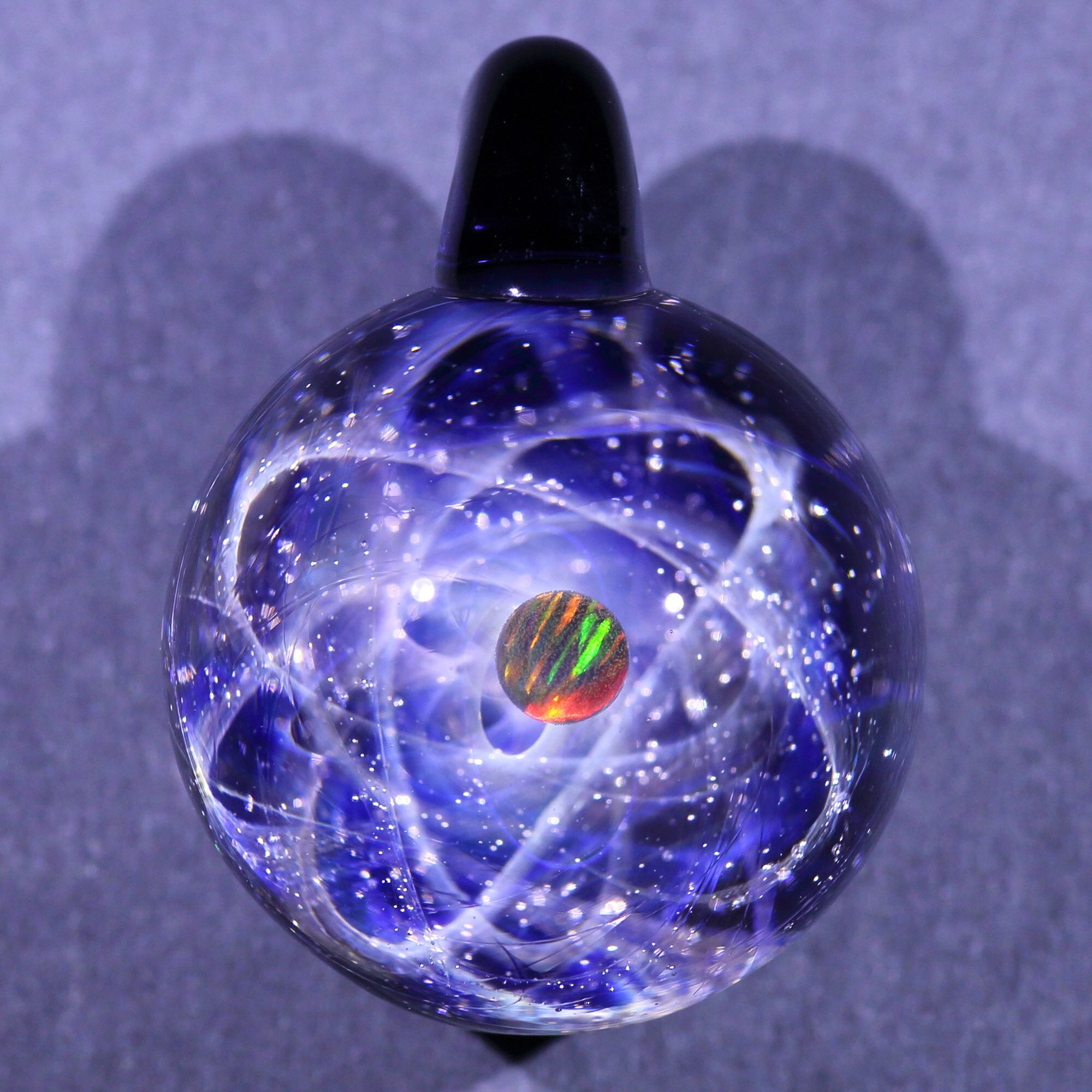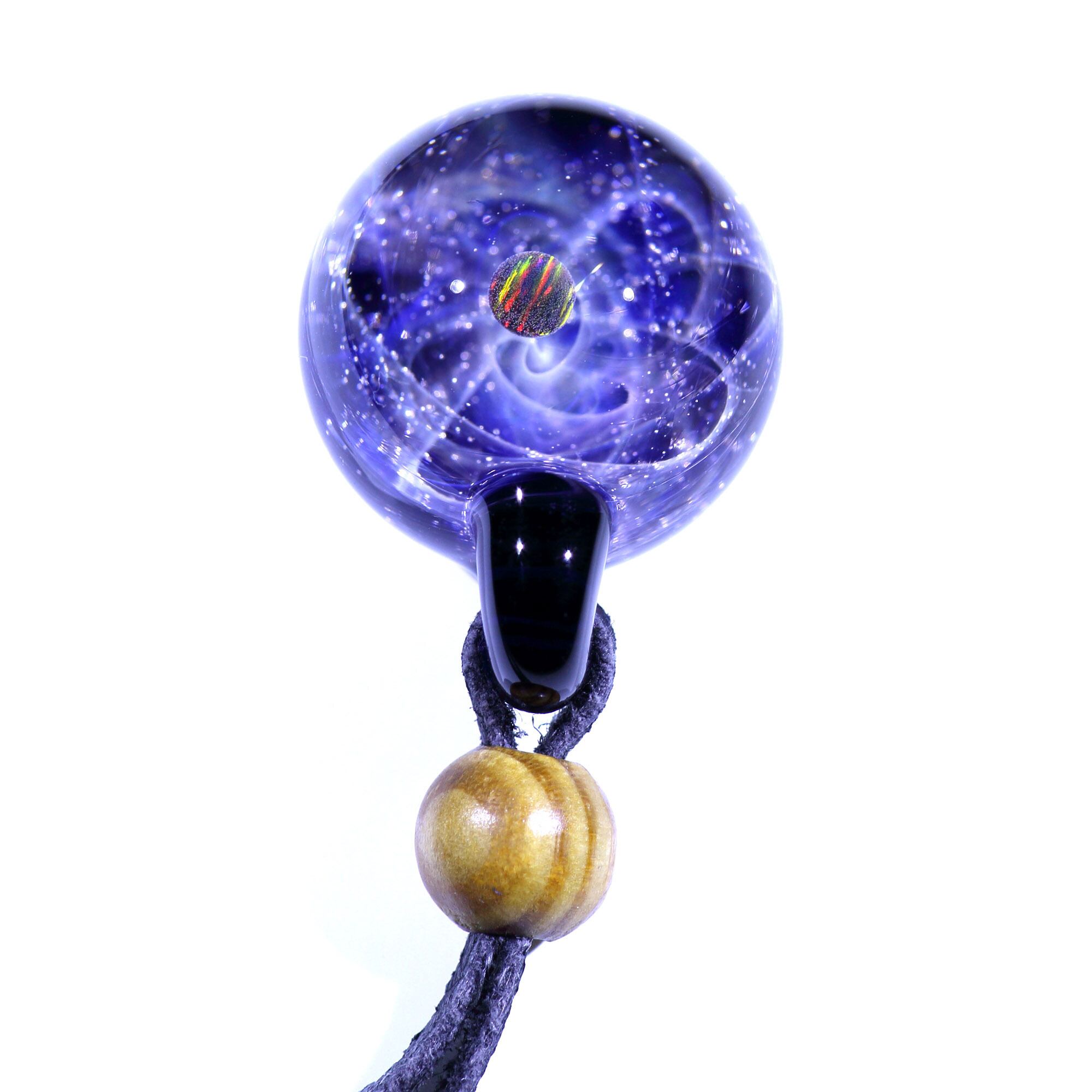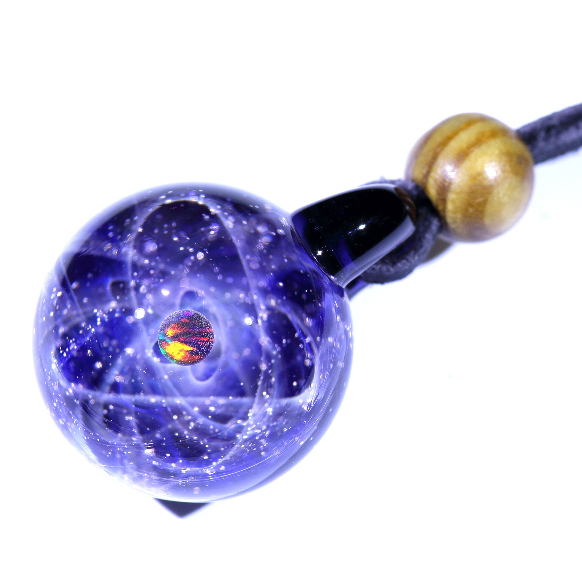 螺旋状銀河にオパールを閉じ込めた宇宙ガラスネックレス。