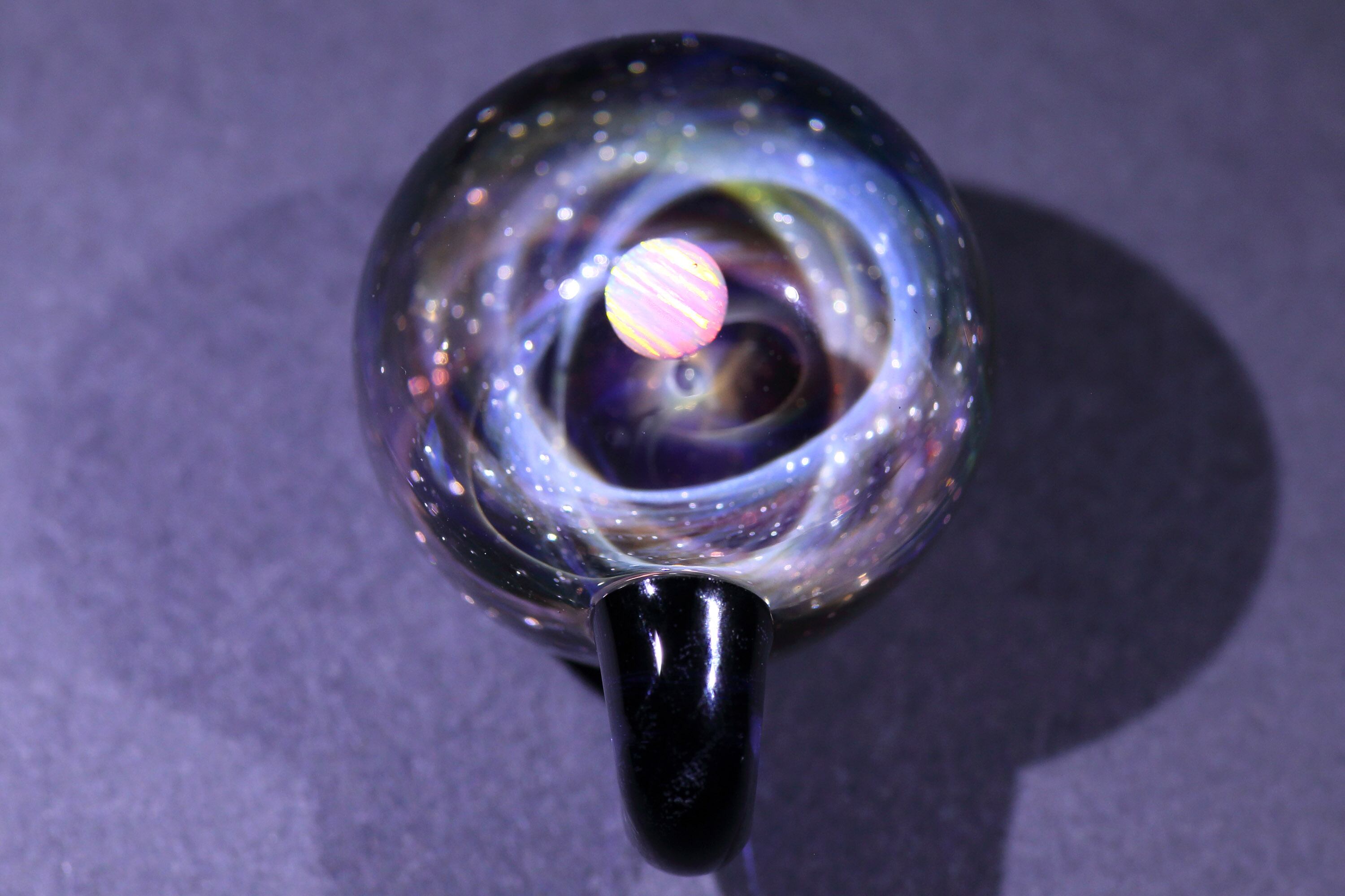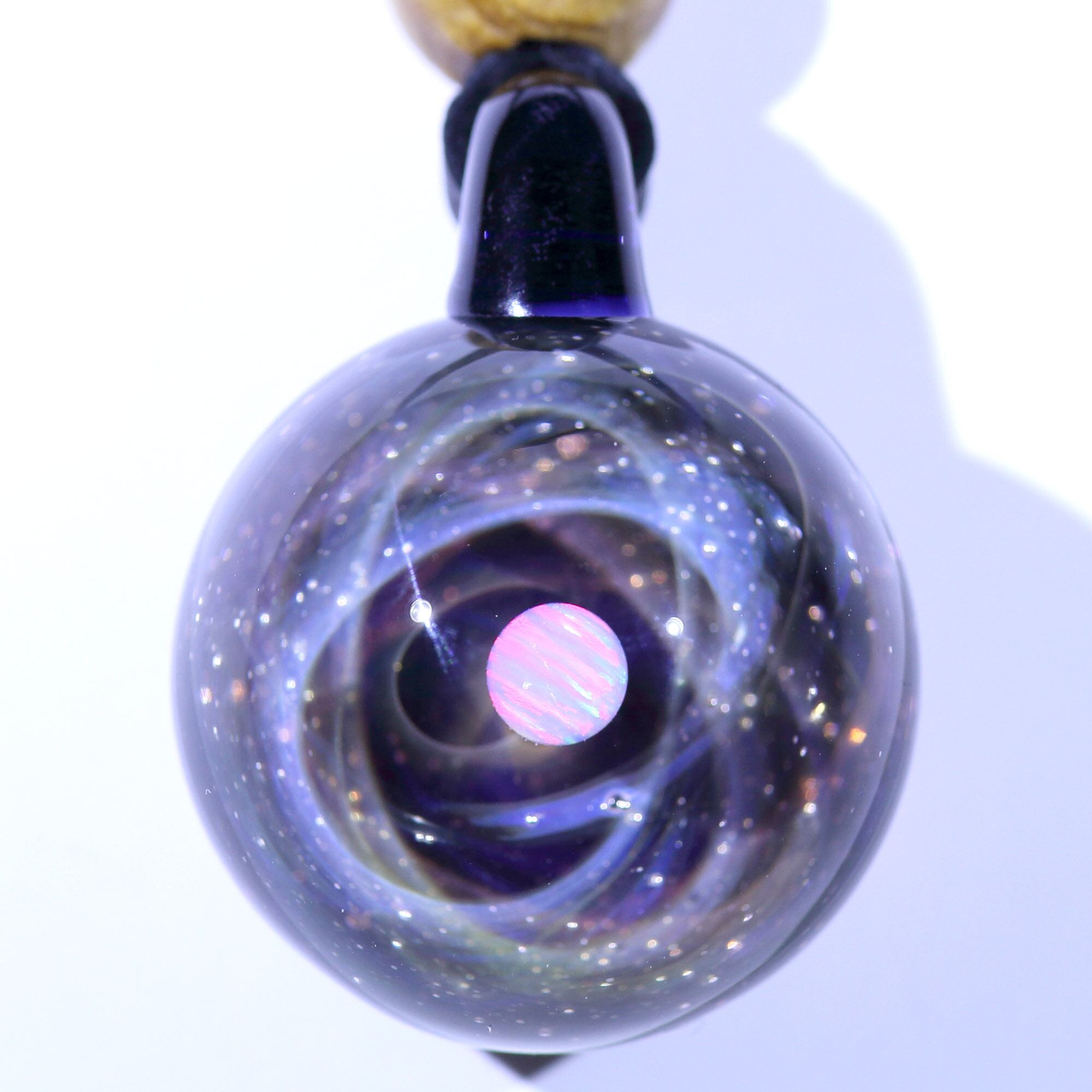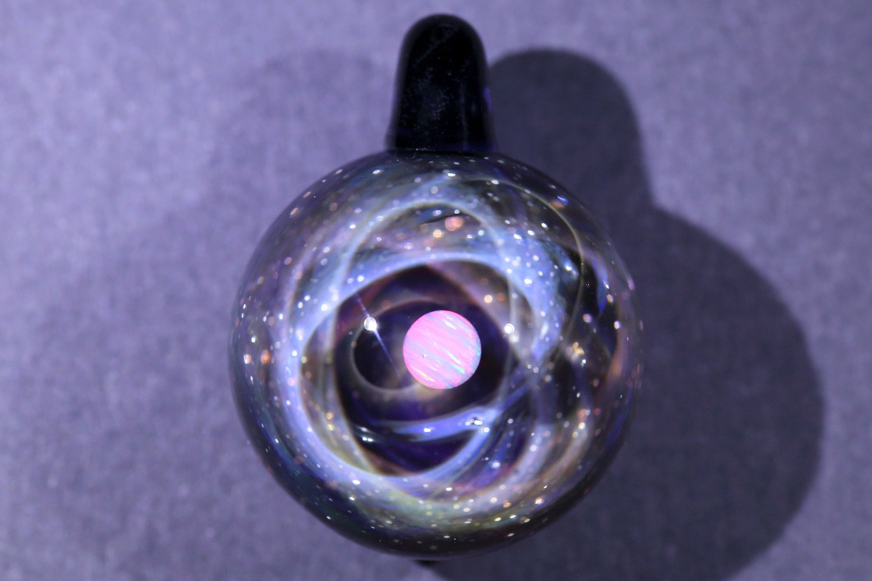 螺旋状銀河にオパールを閉じ込めた宇宙ガラスネックレス。