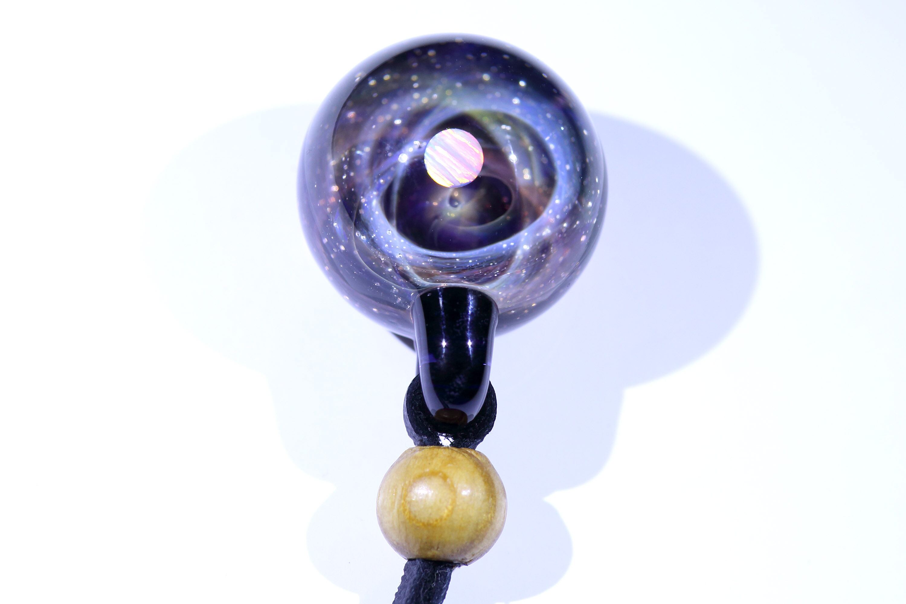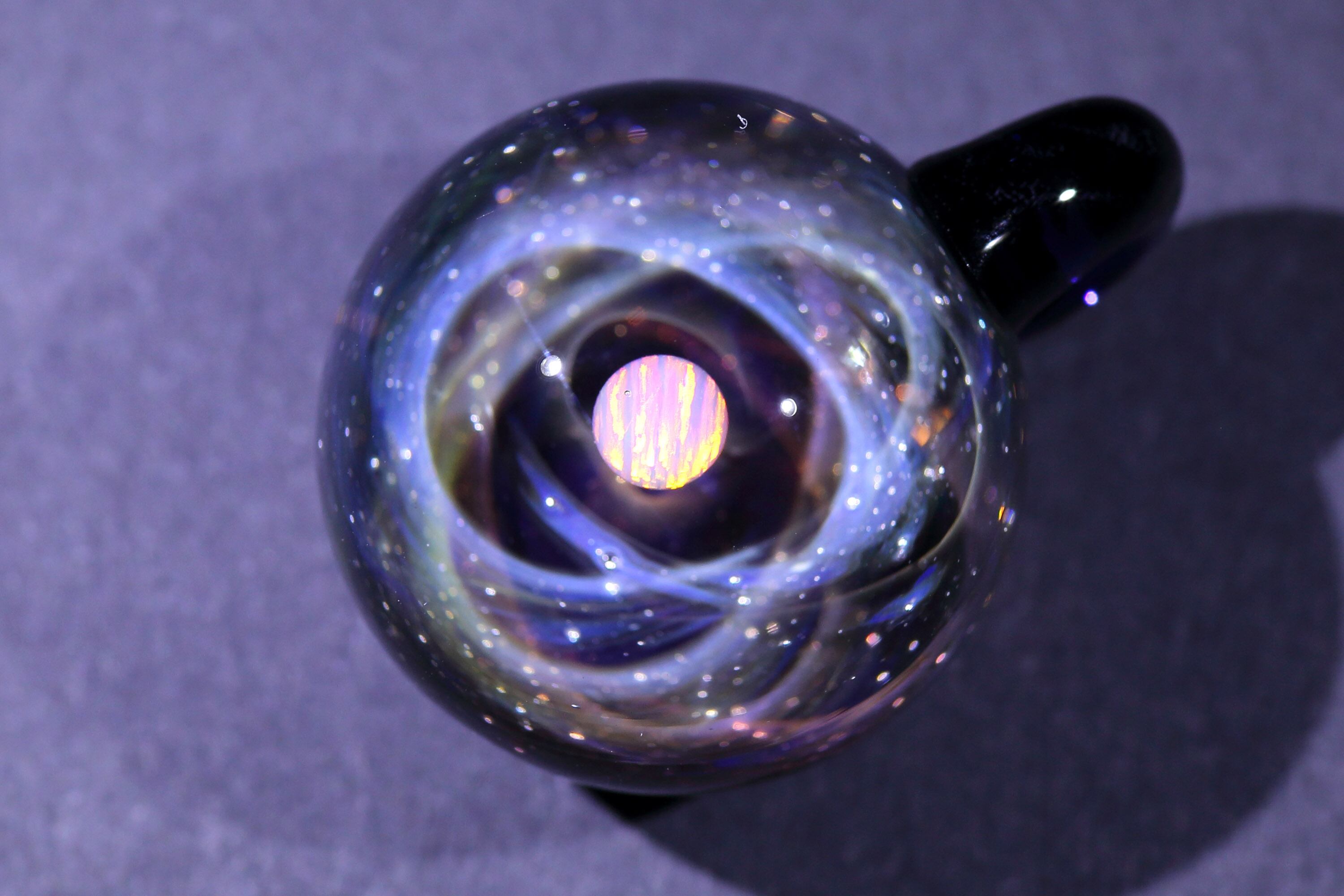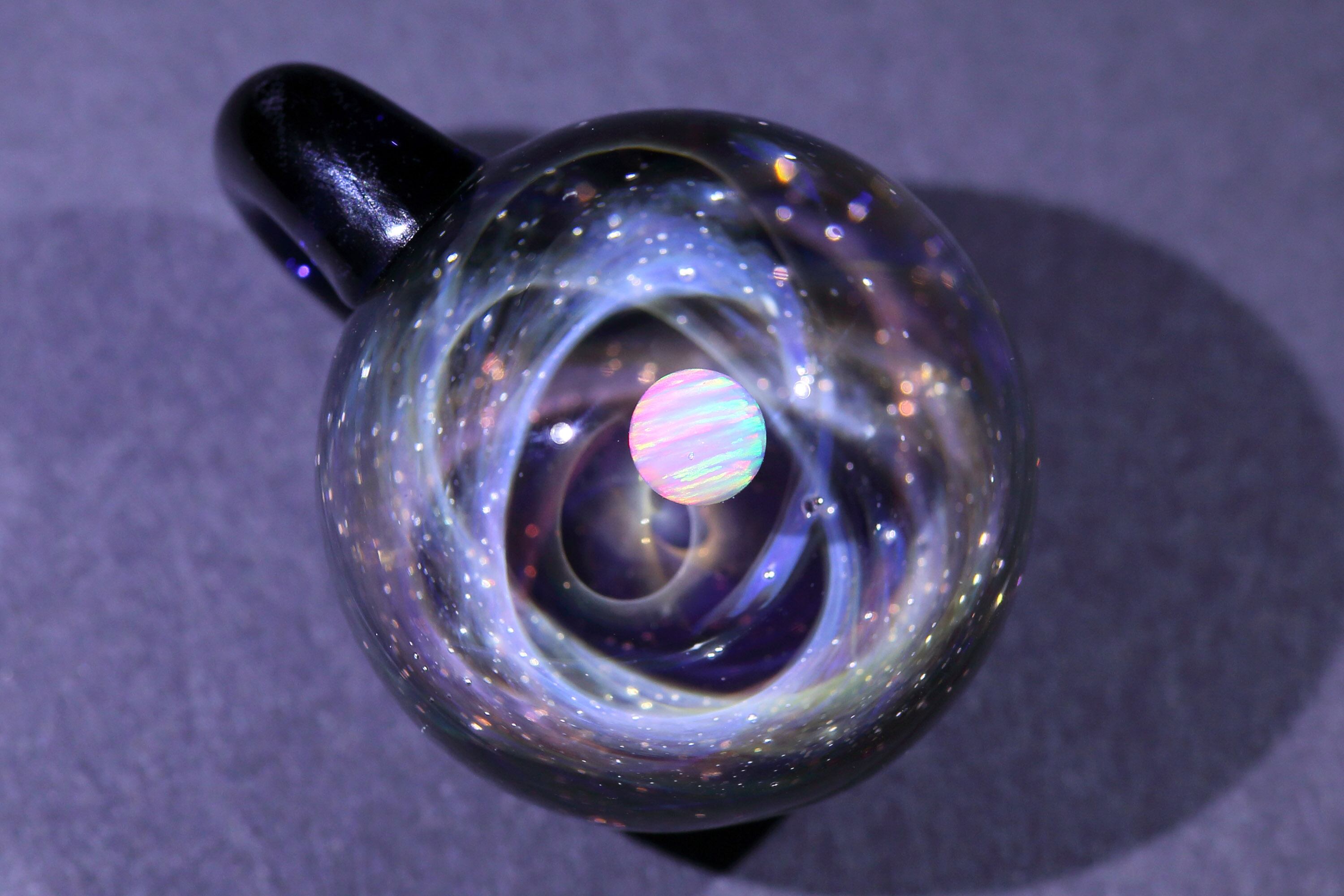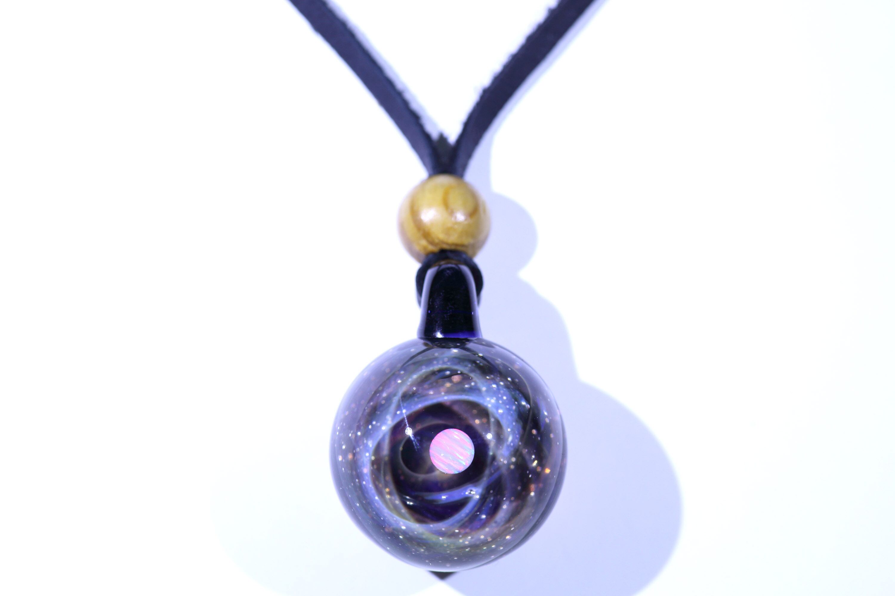 螺旋状銀河にオパールを閉じ込めた宇宙ガラスネックレス。