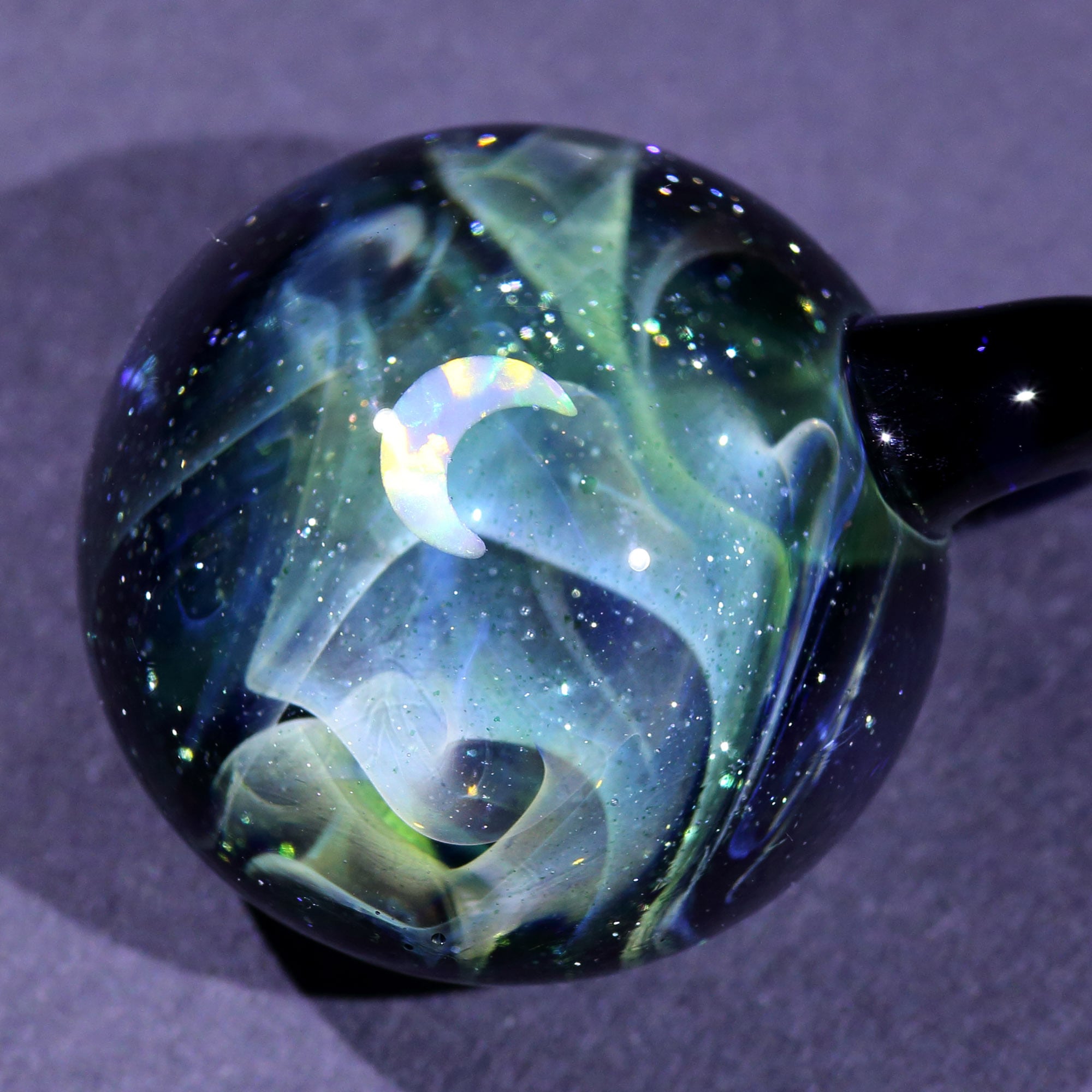 揺らめくオーロラを背景に、煌く星々、多様な色に変化する高品質なオパール美しさを包み込みました。