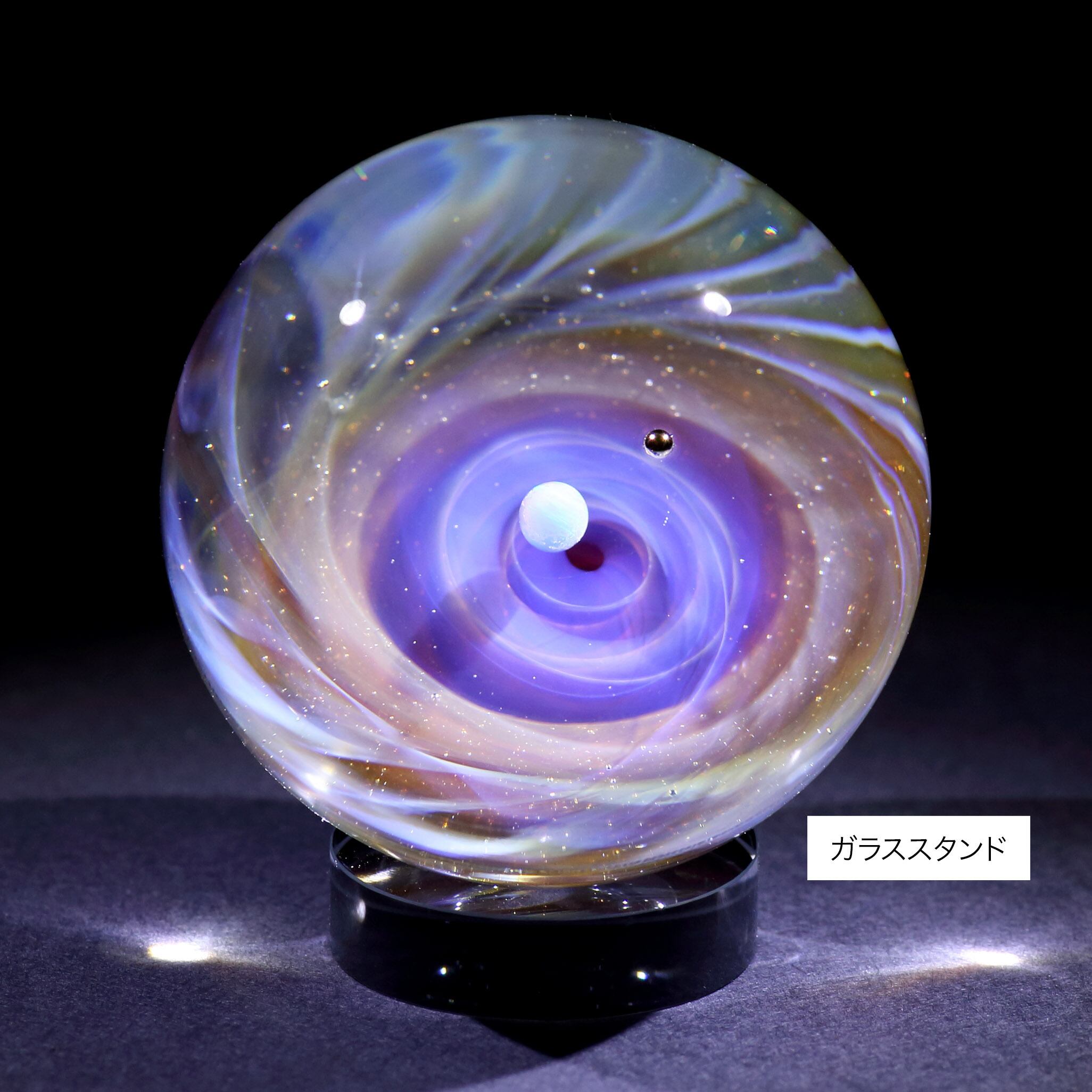 ガラススタンドを無料でお付けいたします。宇宙ガラスは置く角によって見え方が変わります。置き方で様々に表情を変える宇宙・星雲をお楽しみください。