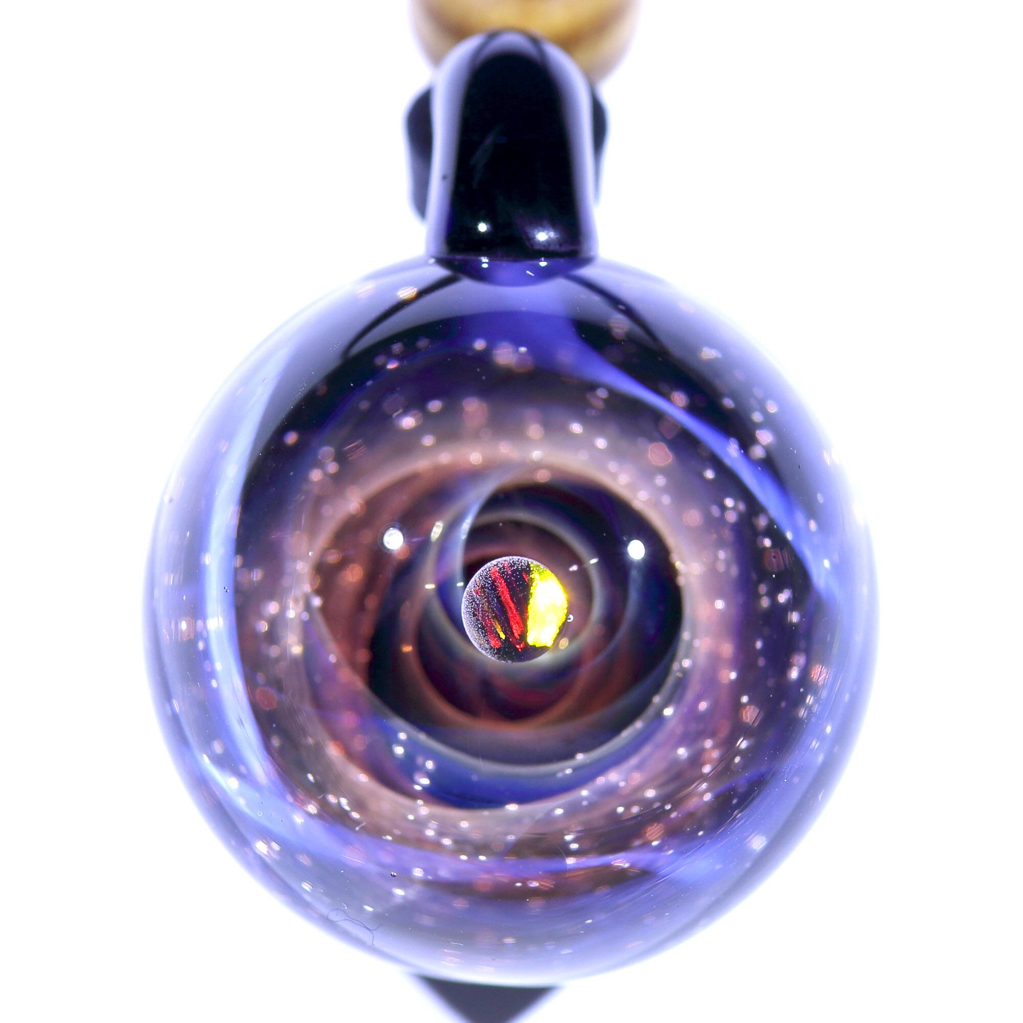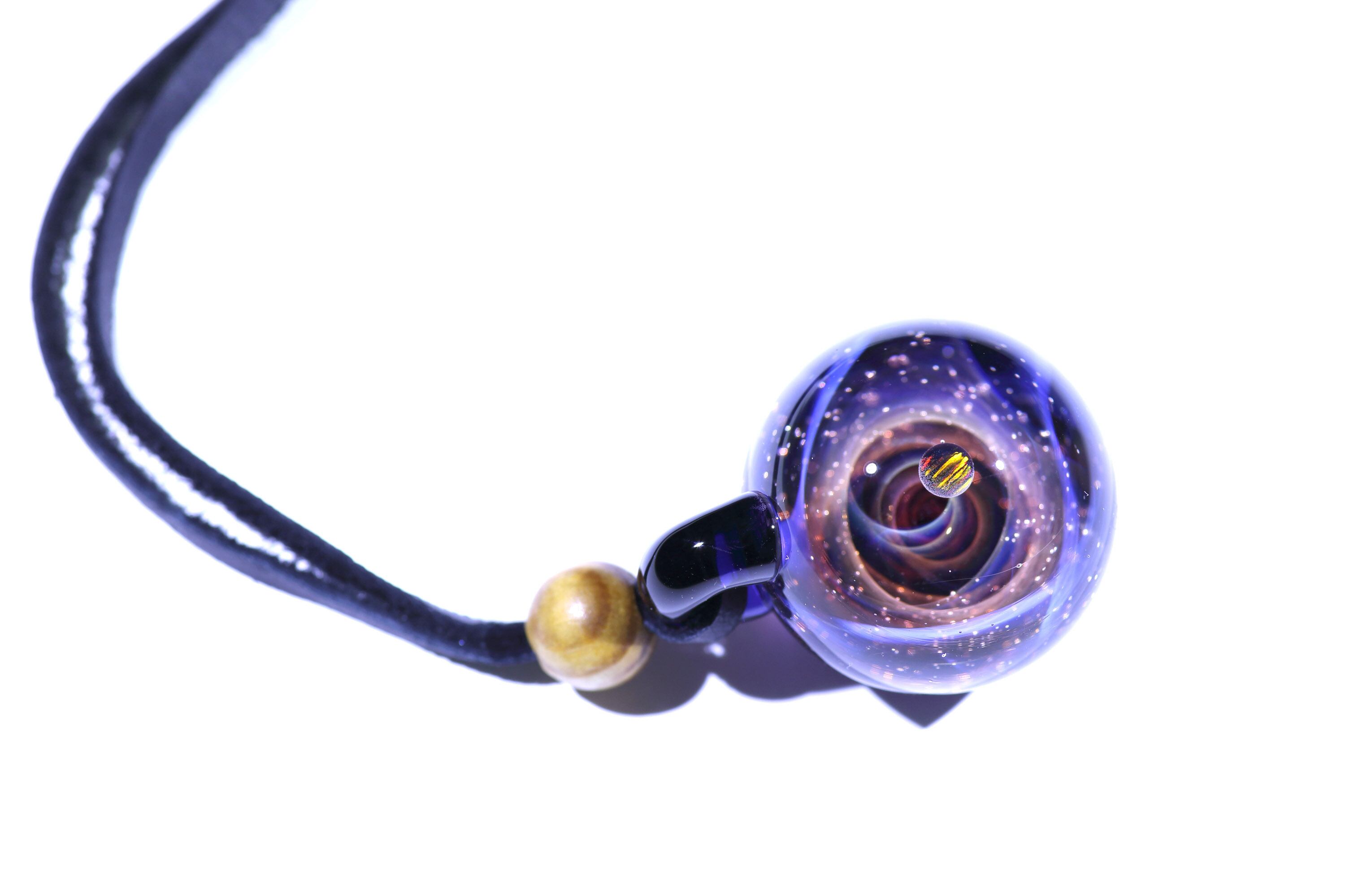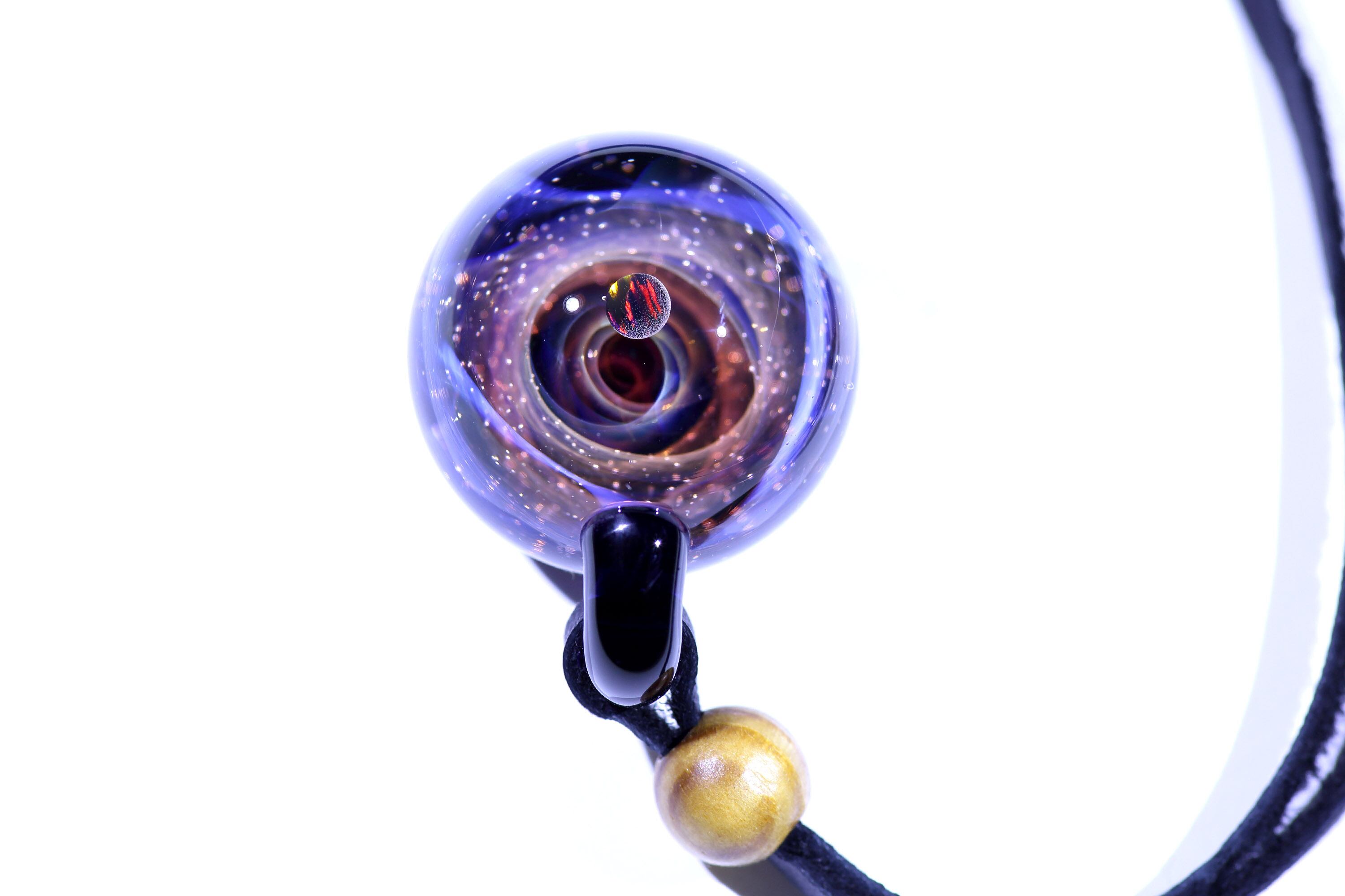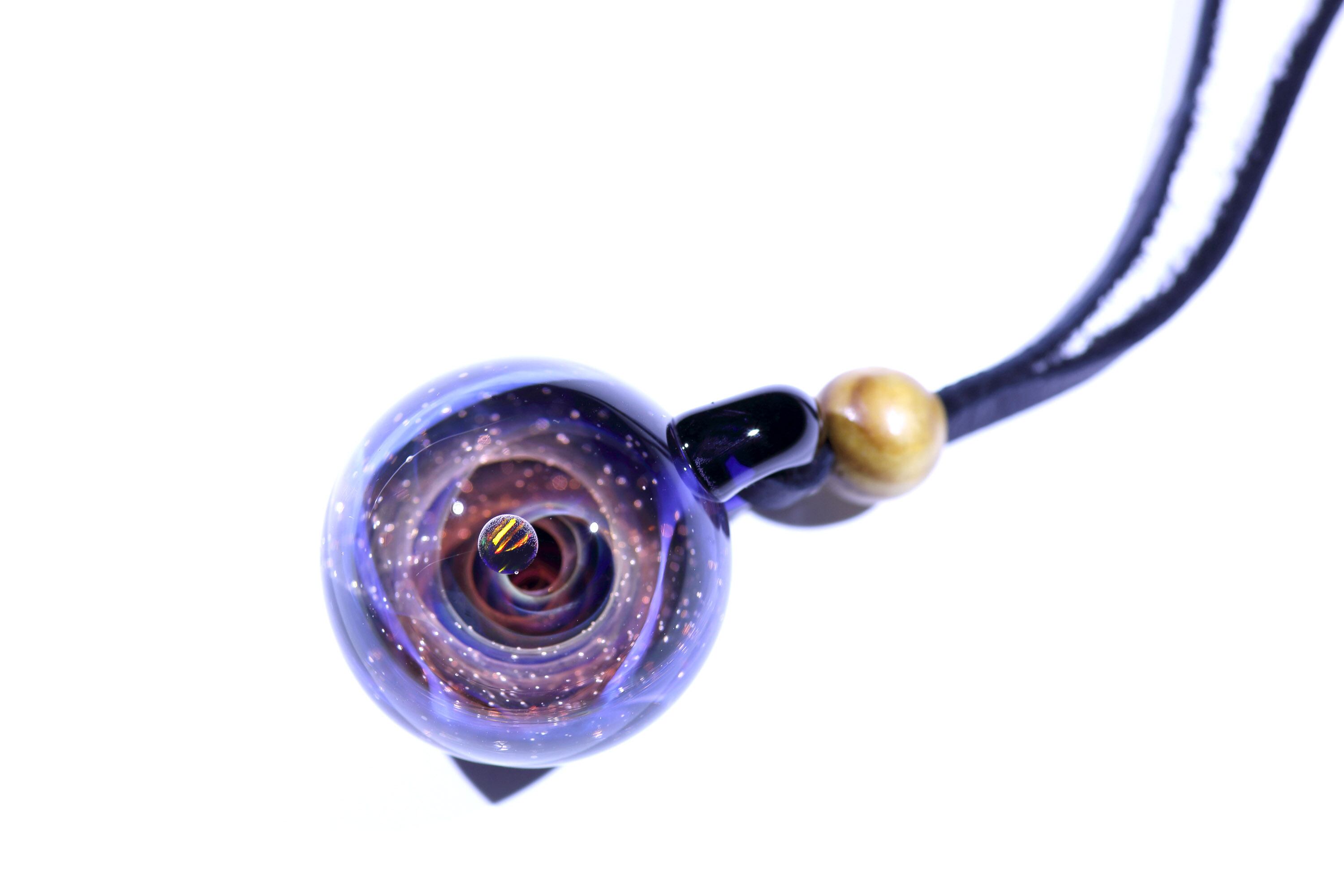螺旋状銀河にオパールを閉じ込めた宇宙ガラスネックレス。