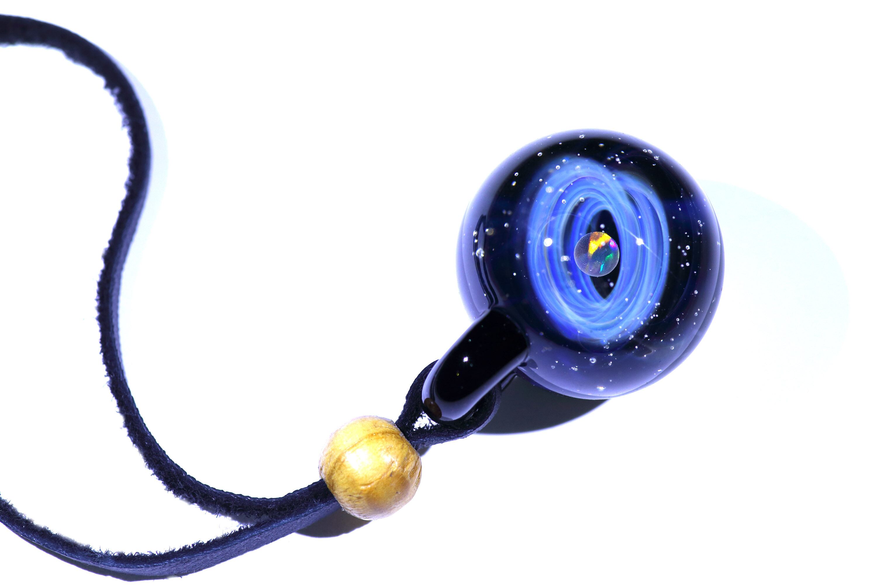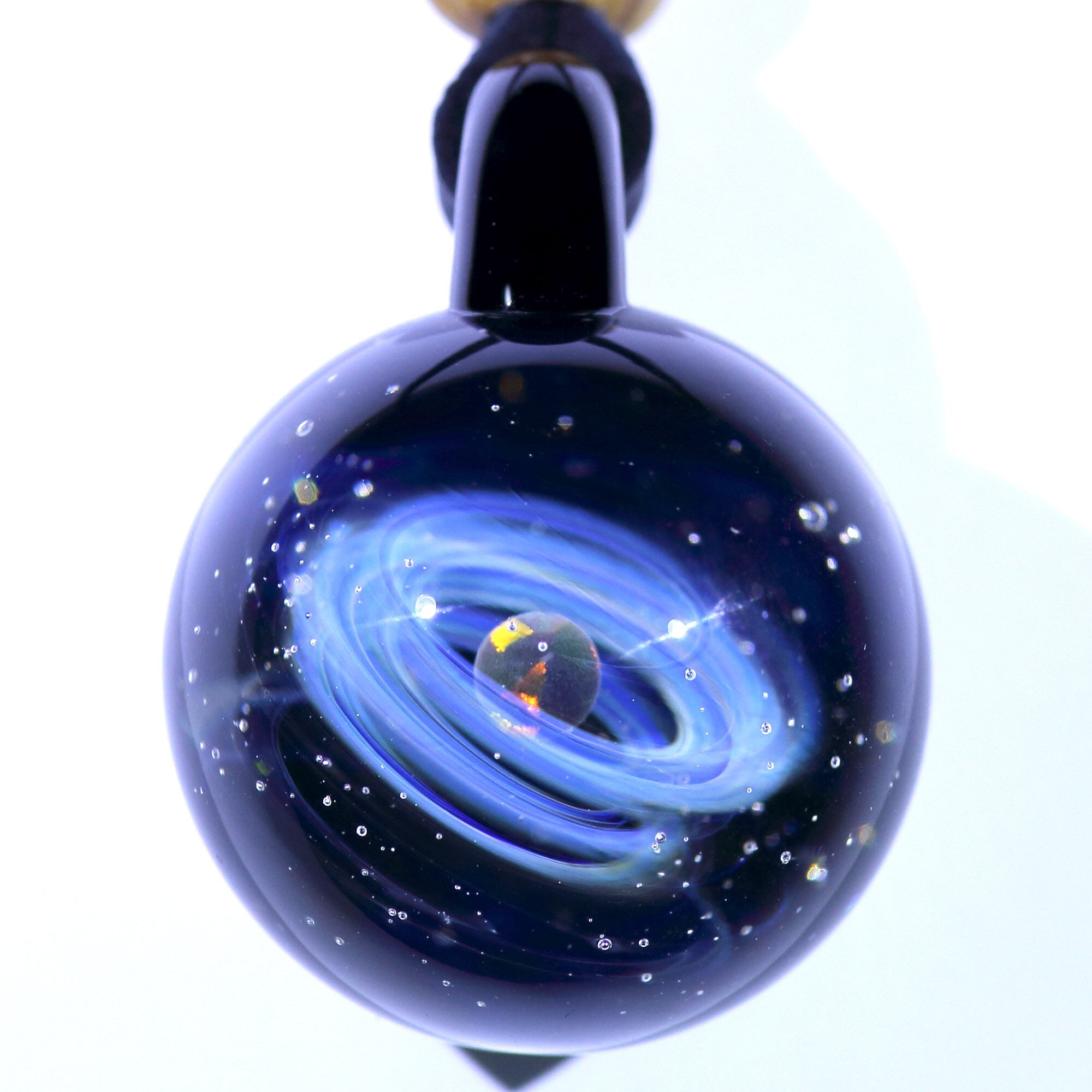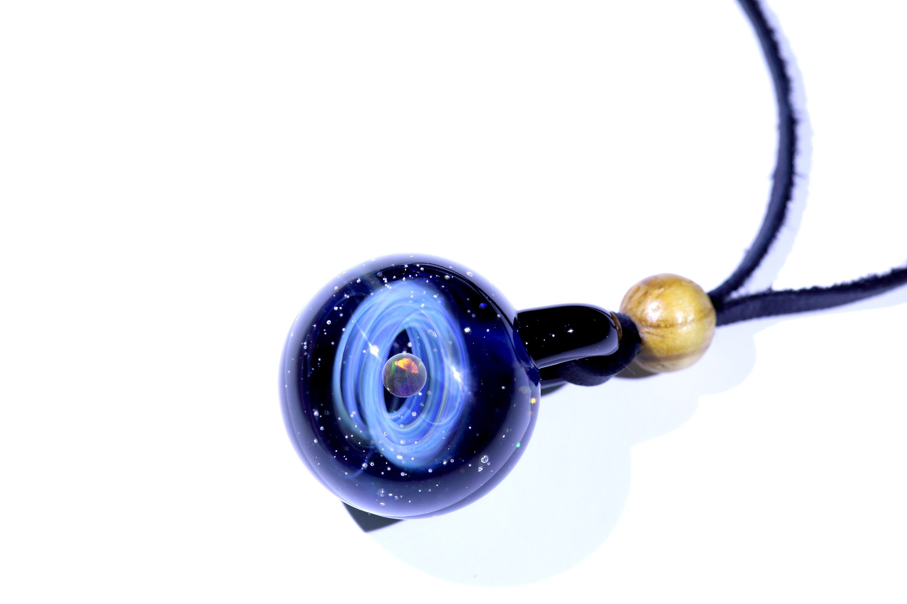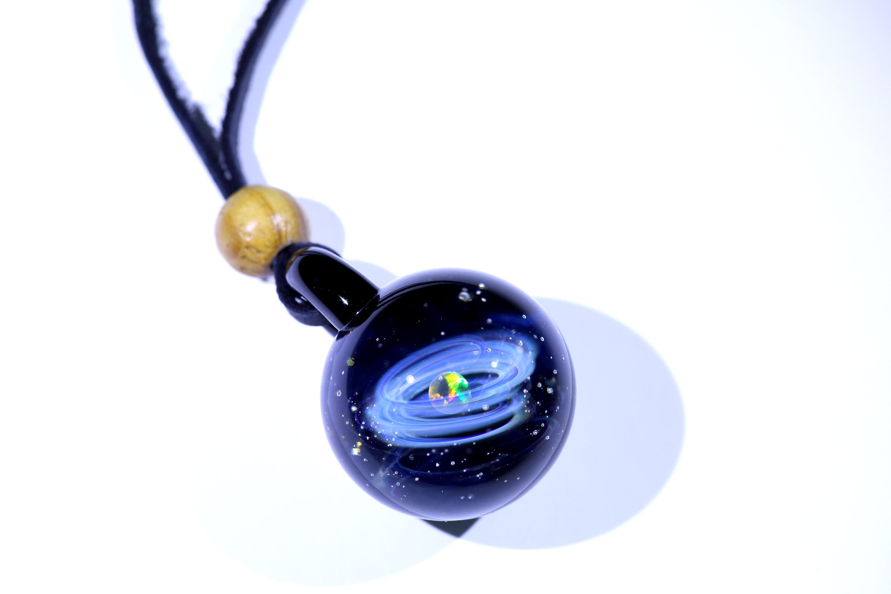 螺旋状銀河にオパールを閉じ込めた宇宙ガラスネックレス。
