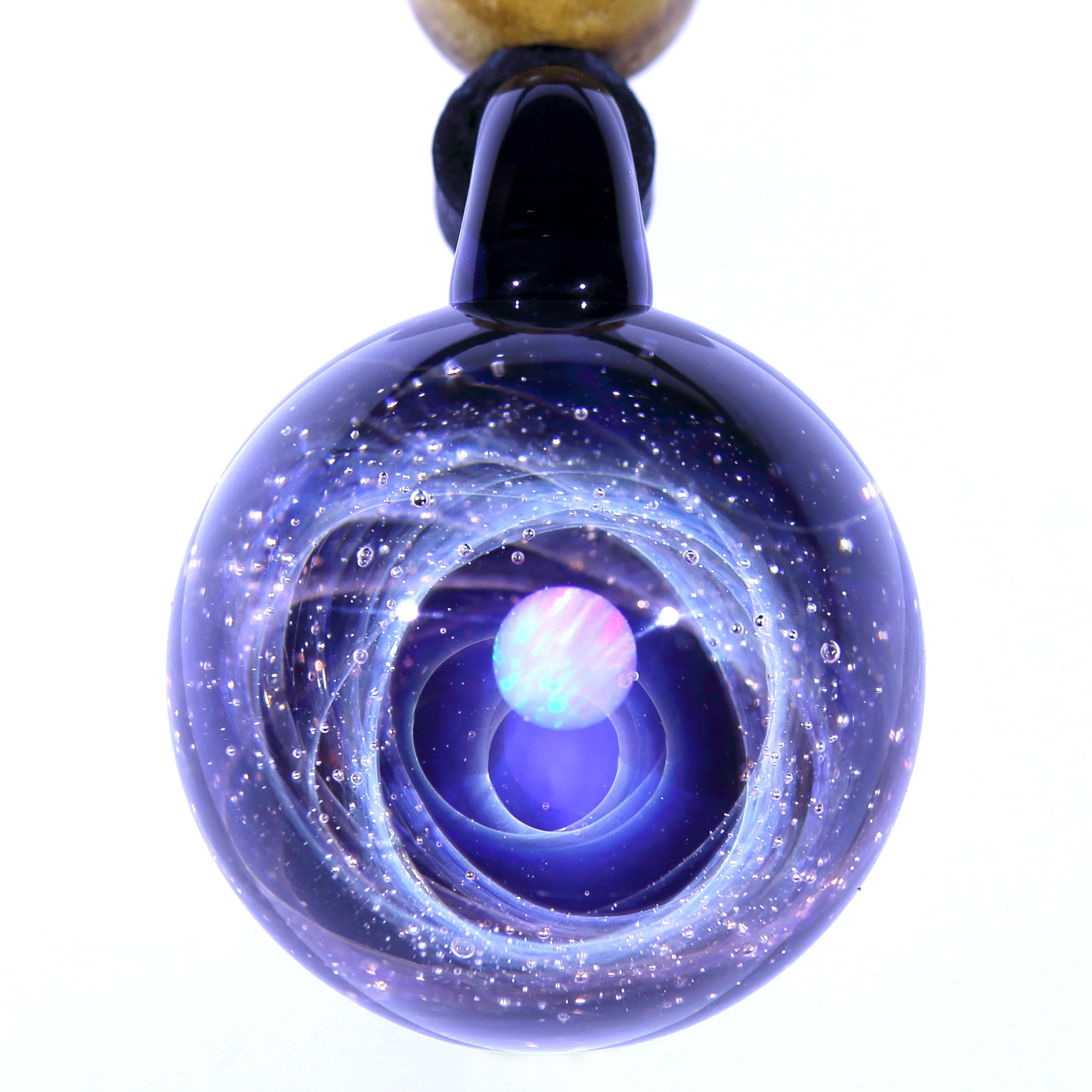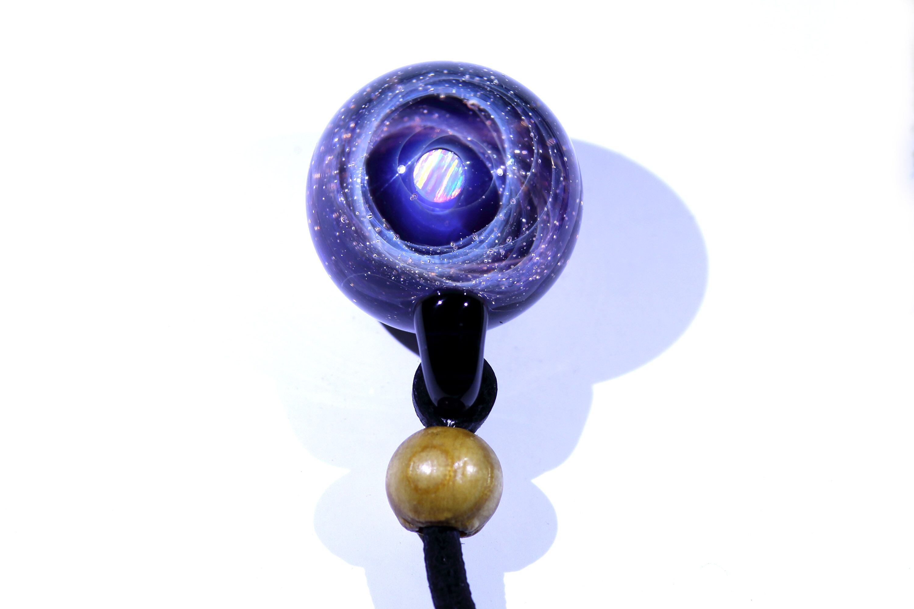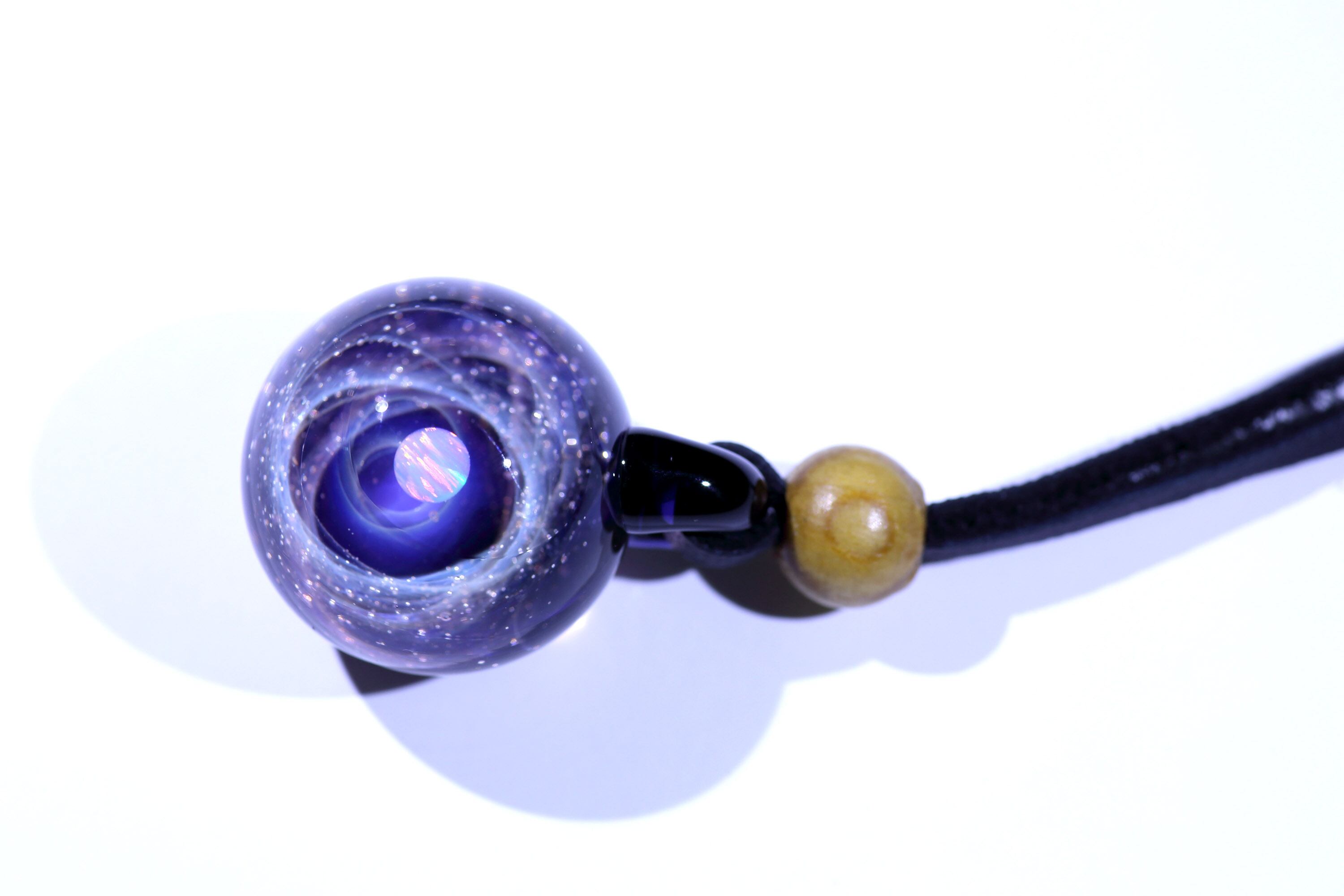 螺旋状銀河にオパールを閉じ込めた宇宙ガラスネックレス。