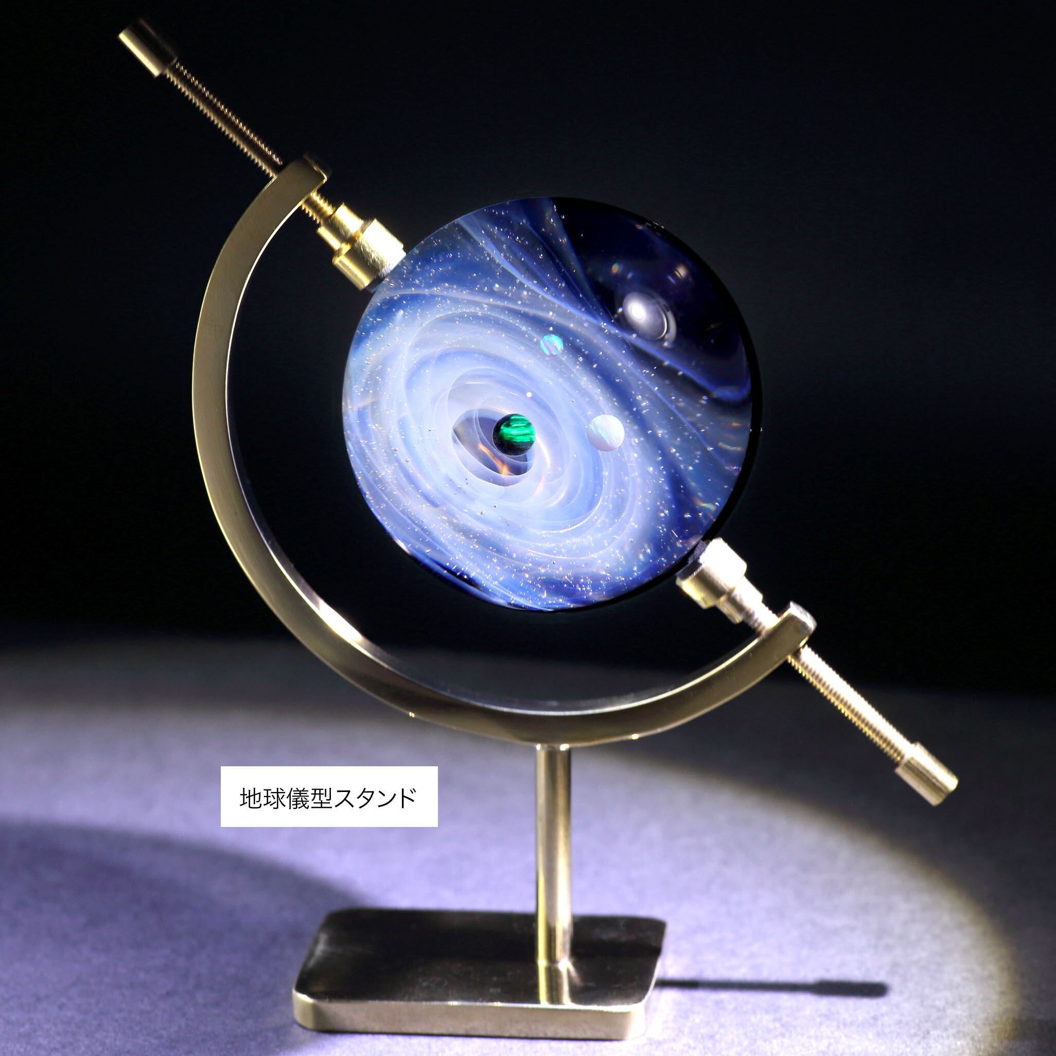 真鍮製地球儀型スタンド(高さ:約120mm、幅:約85mm)は¥4000の追加でお付けできます。