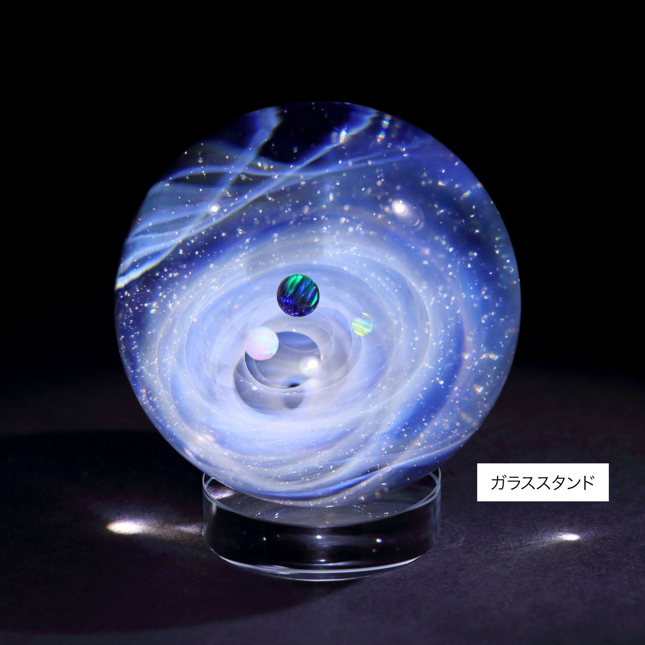 ガラススタンドを無料でお付けいたします。宇宙ガラスは置く角によって見え方が変わります。置き方で様々に表情を変える宇宙・星雲をお楽しみください。