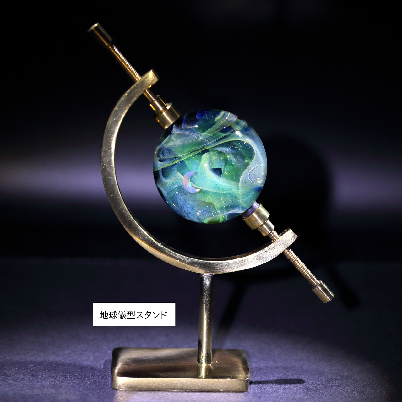 真鍮製地球儀型スタンド(高さ:約110mm、幅:約67mm)は¥4000の追加でお付けできます。