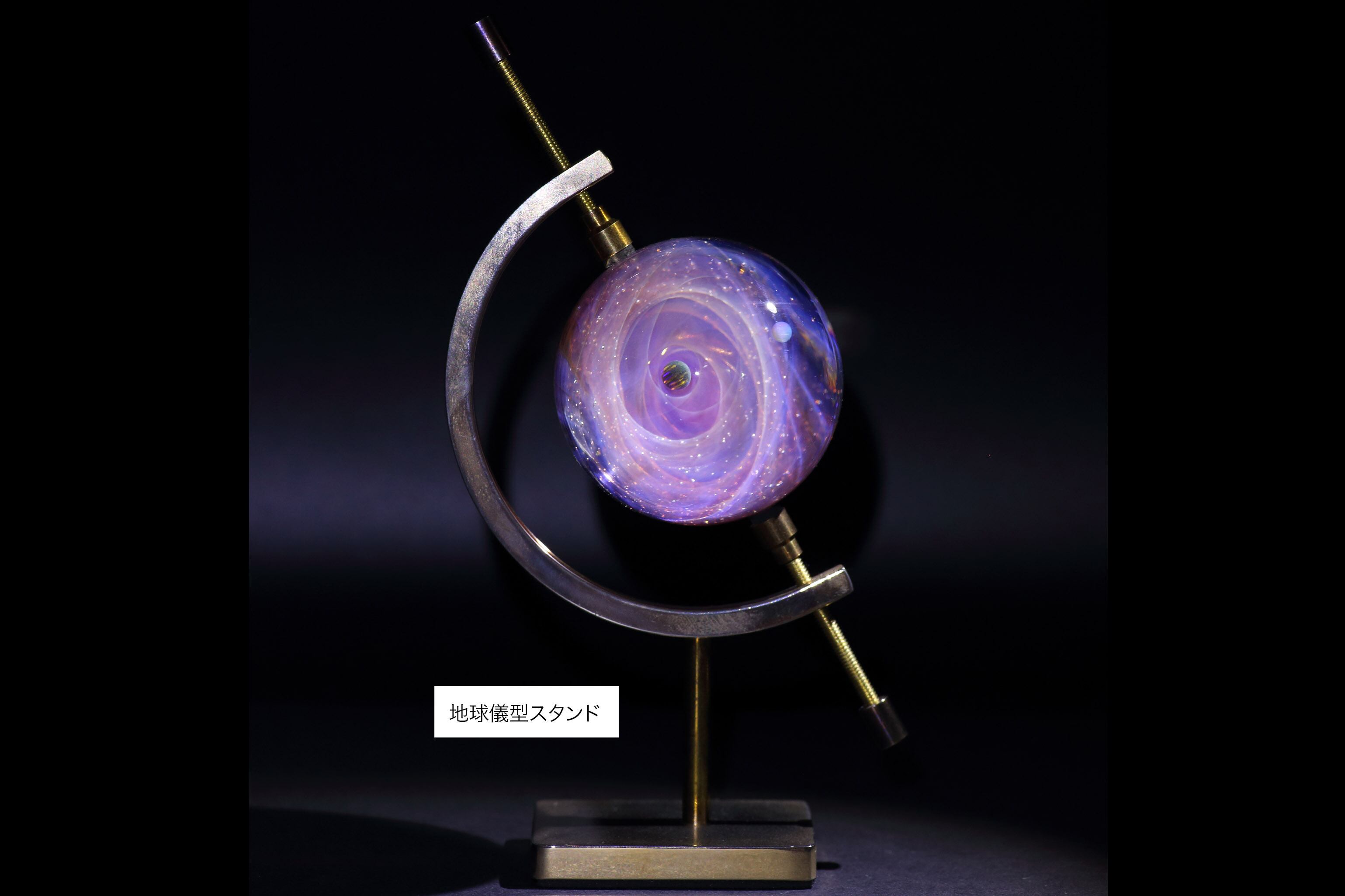真鍮製地球儀型スタンド(高さ:約120mm、幅:約85mm)は¥4000の追加でお付けできます。
