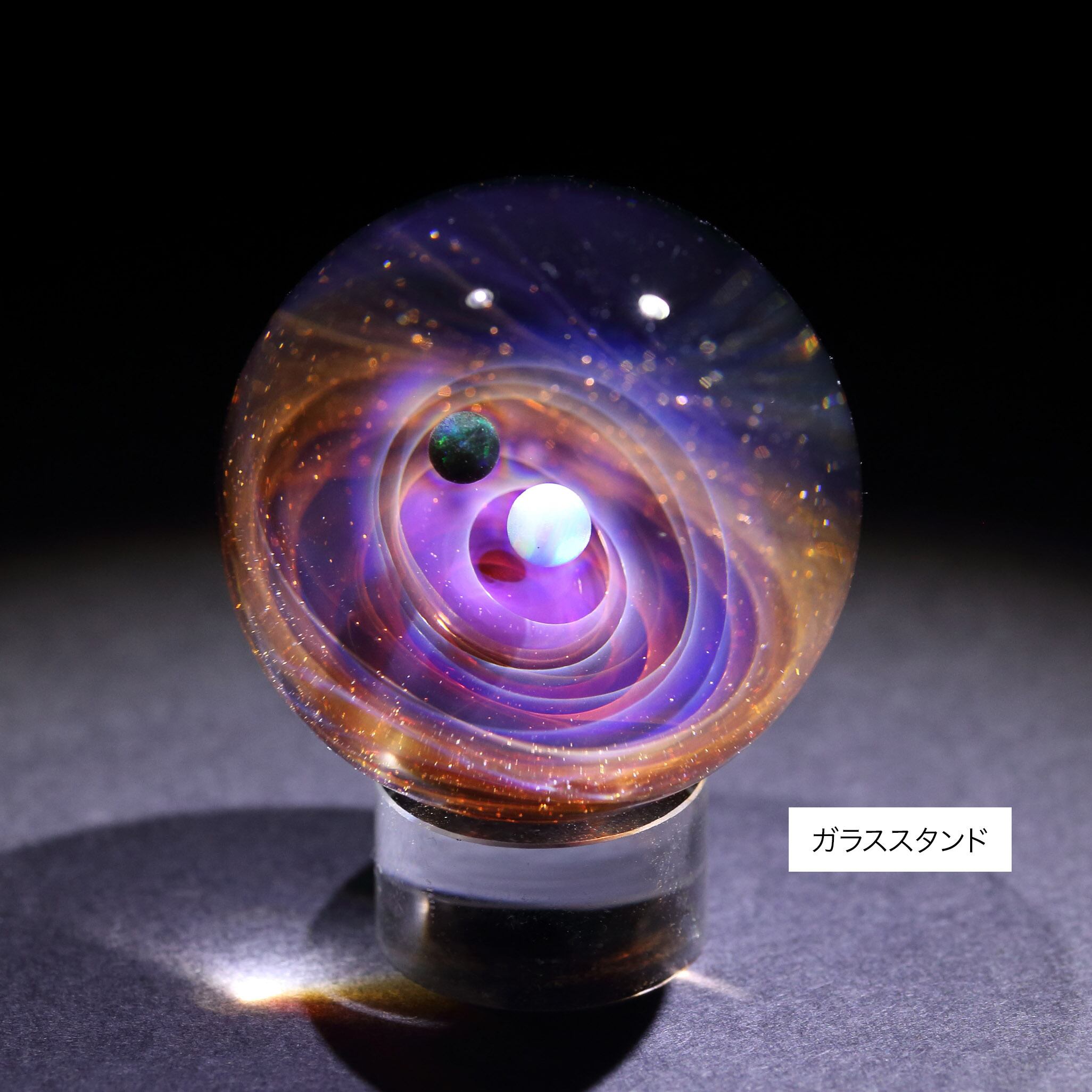 ガラススタンドを無料でお付けいたします。宇宙ガラスは置く角によって見え方が変わります。置き方で様々に表情を変える宇宙・星雲をお楽しみください。