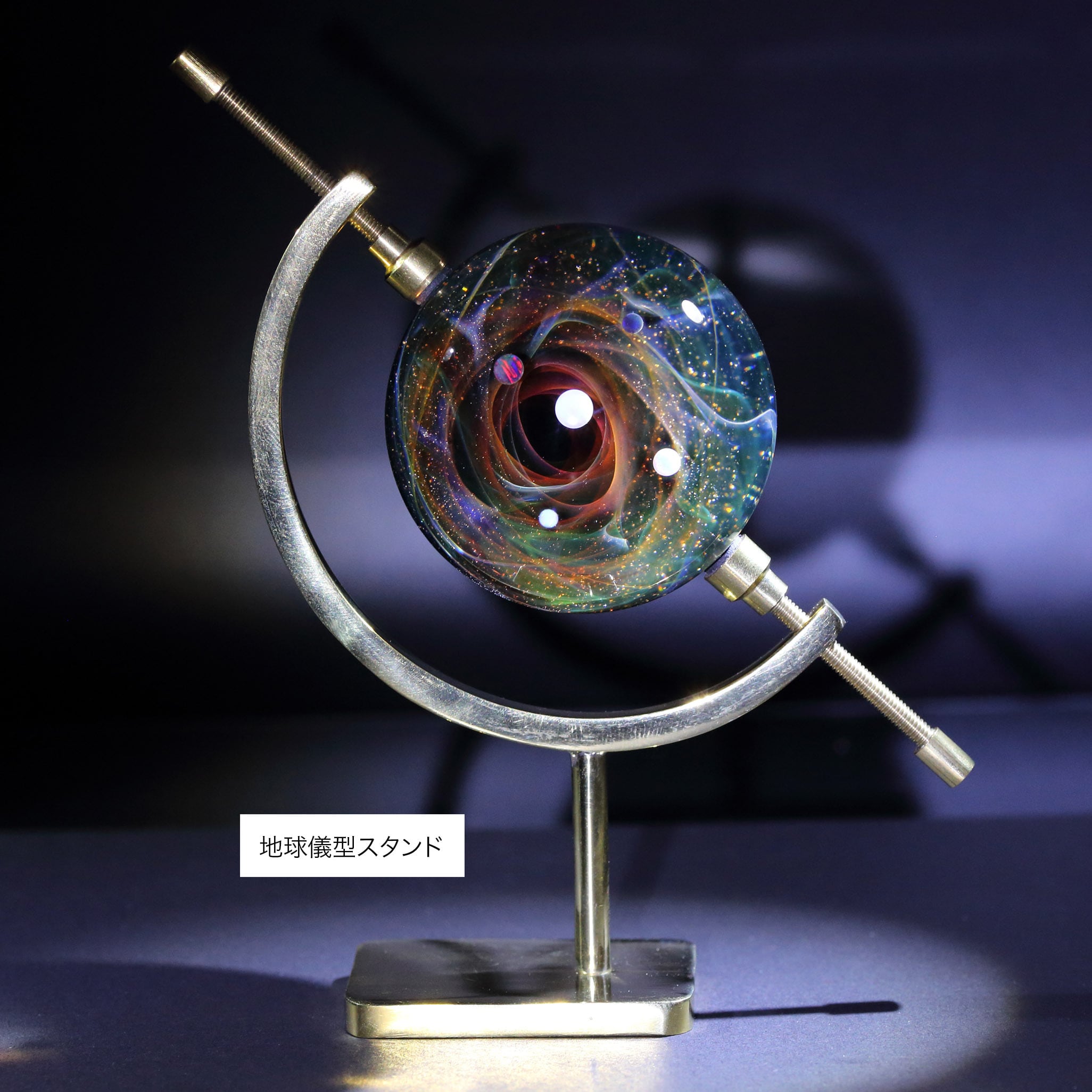 真鍮製地球儀型スタンド(高さ:約120mm、幅:約85mm)は¥4000の追加でお付けできます。