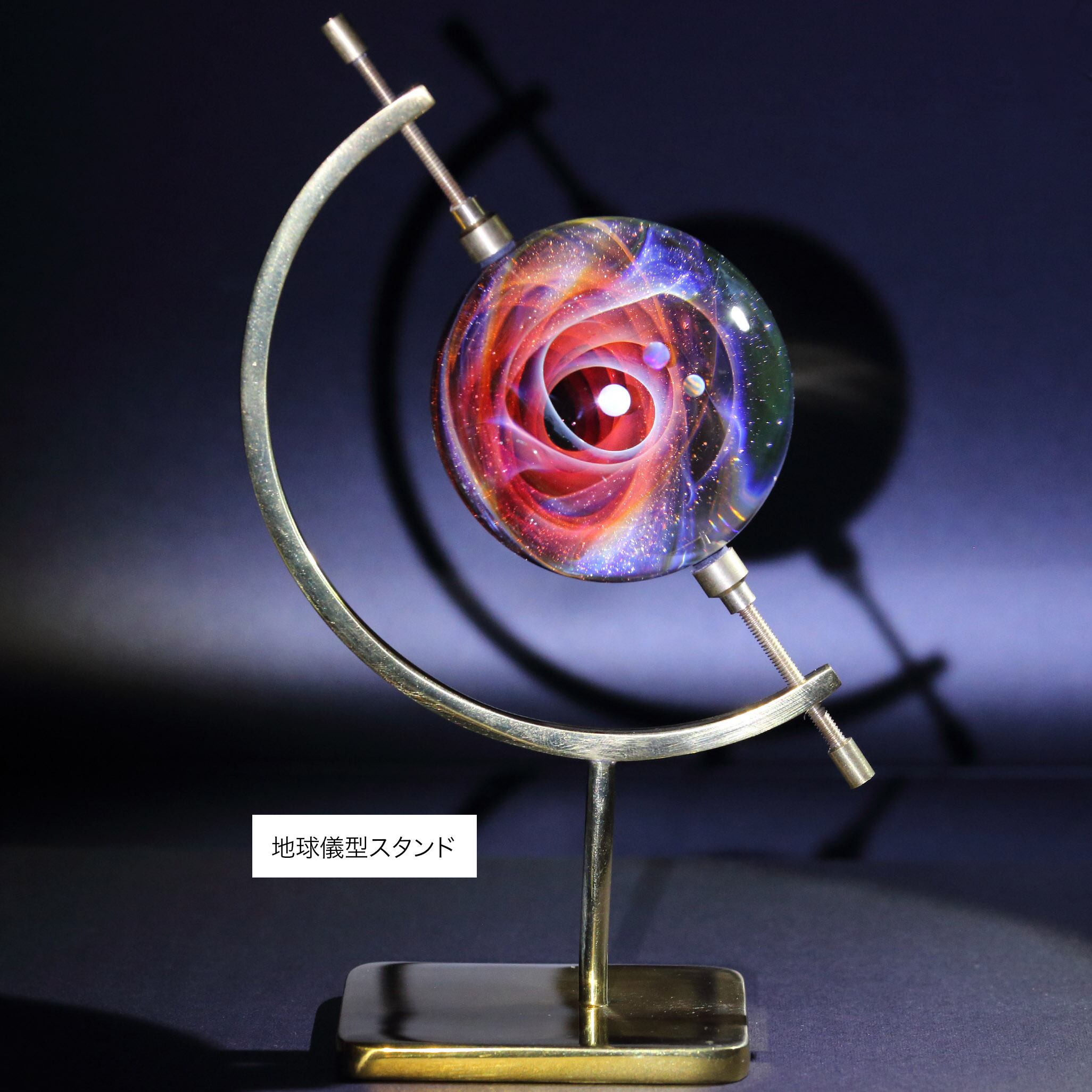 真鍮製地球儀型スタンド(高さ:約160mm、幅:約100mm)は¥4500の追加でお付けできます。