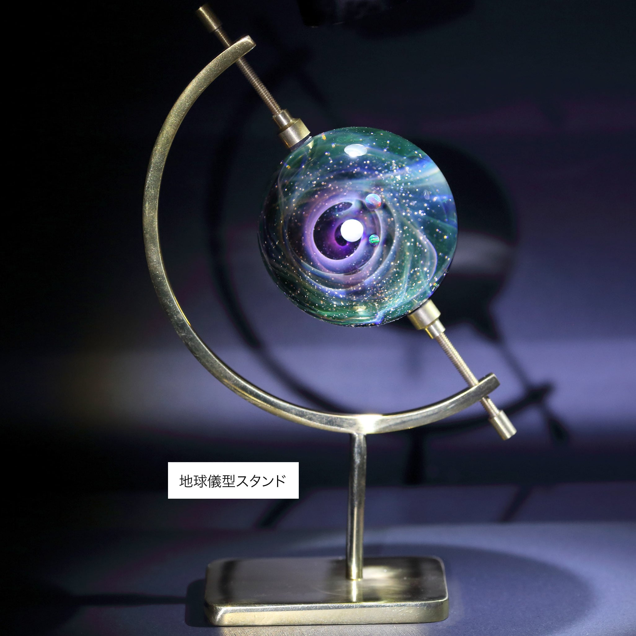 真鍮製地球儀型スタンド(高さ:約160mm、幅:約100mm)は¥4500の追加でお付けできます。