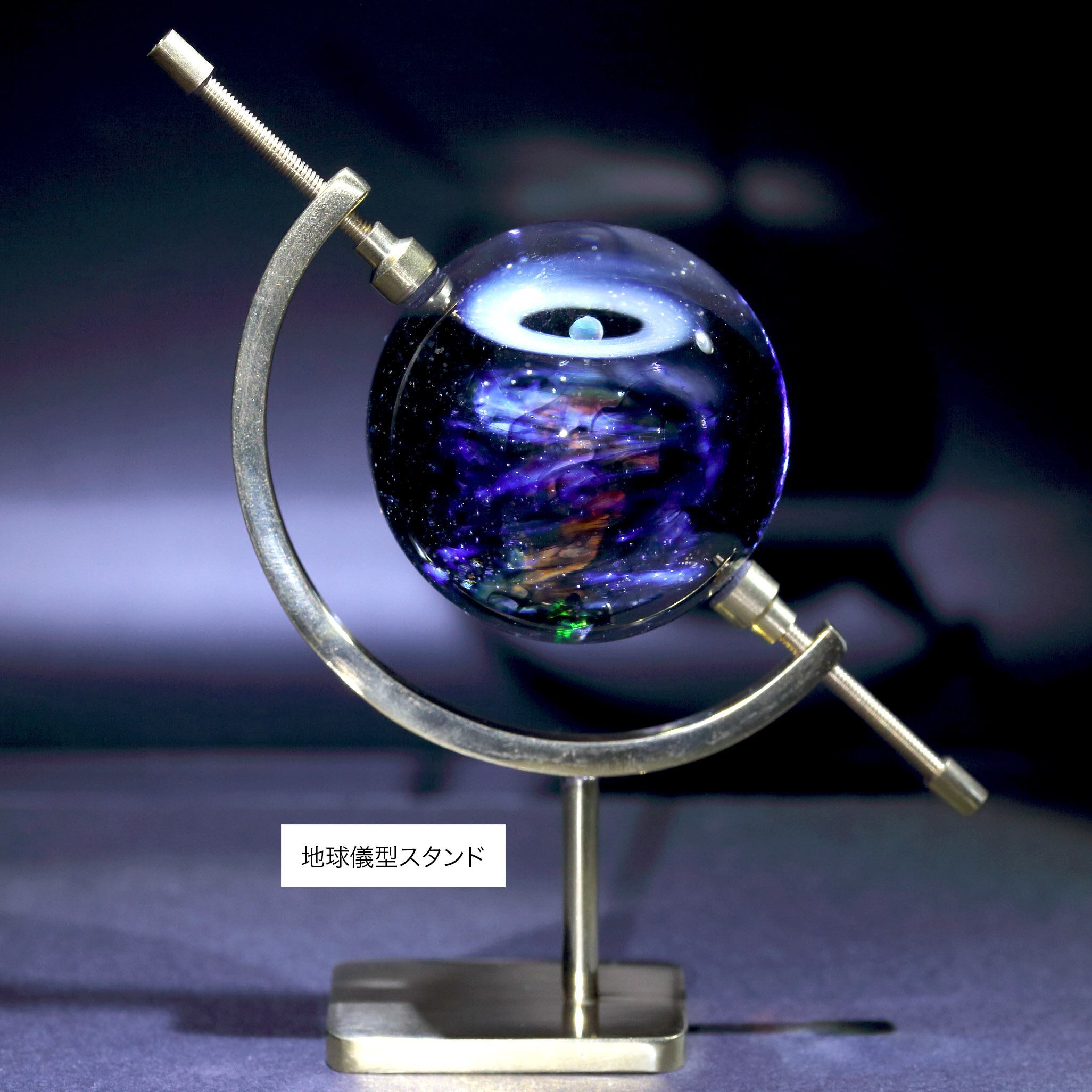 真鍮製地球儀型スタンド(高さ:約120mm、幅:約85mm)は¥4000の追加でお付けできます。